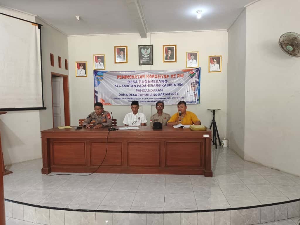 Pangandaran – Upaya menjaga keamanan dan ketertiban lingkungan kembali ditunjukkan oleh Bhabinkamtibmas Desa Padaherang, Aiptu Kukun Suarna, S.H., melalui kegiatan Peningkatan Kapasitas RT dan RW di Desa Padaherang, Kecamatan Padaherang, pada Senin (22/9/2025).