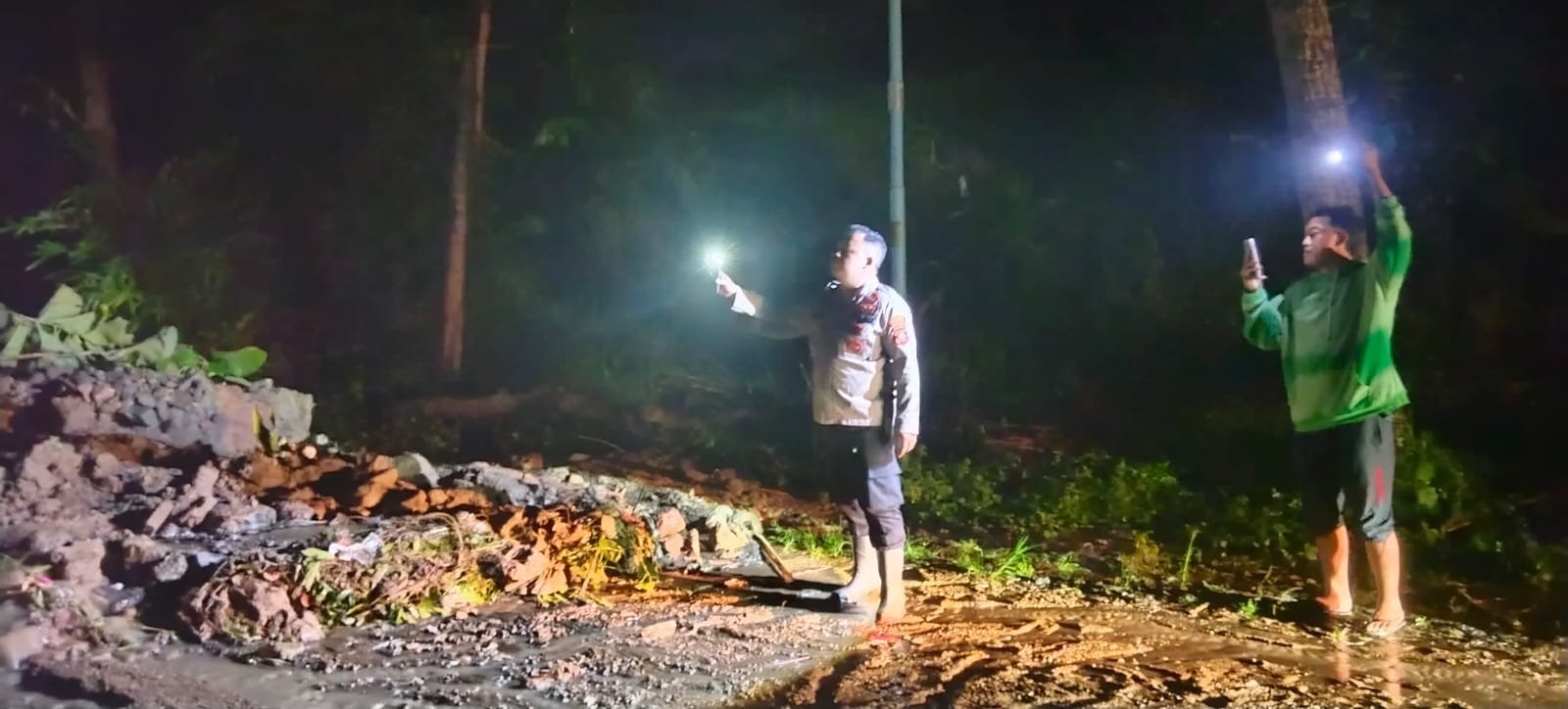 Petugas segera melakukan pengamanan lokasi serta berkoordinasi dengan dinas terkait guna penanganan lebih lanjut. Diperlukan alat berat berupa mini excavator untuk membersihkan material longsor yang menutup badan jalan agar akses transportasi dapat kembali normal.