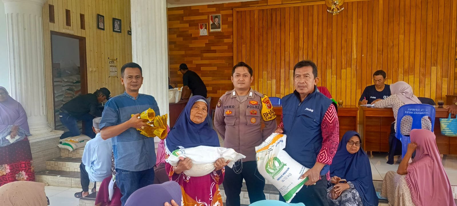 Polsek Padaherang Amankan Penyaluran Bantuan Beras dan Minyak di Mangunjaya