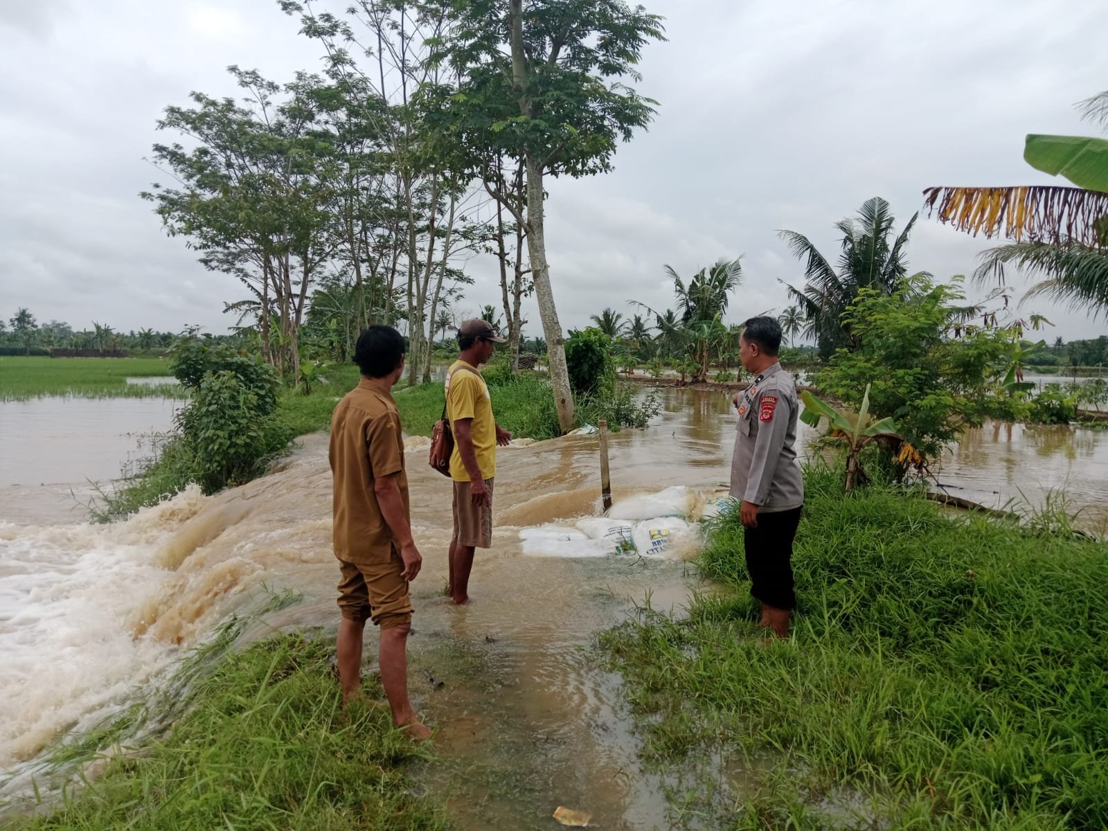 Petugas juga mengimbau agar segera dilakukan penanganan terhadap tanggul yang jebol guna mencegah air meluap hingga ke permukiman warga di sekitar lokasi. Jika debit air terus bertambah, dikhawatirkan genangan air dapat meluas dan mengancam rumah warga.