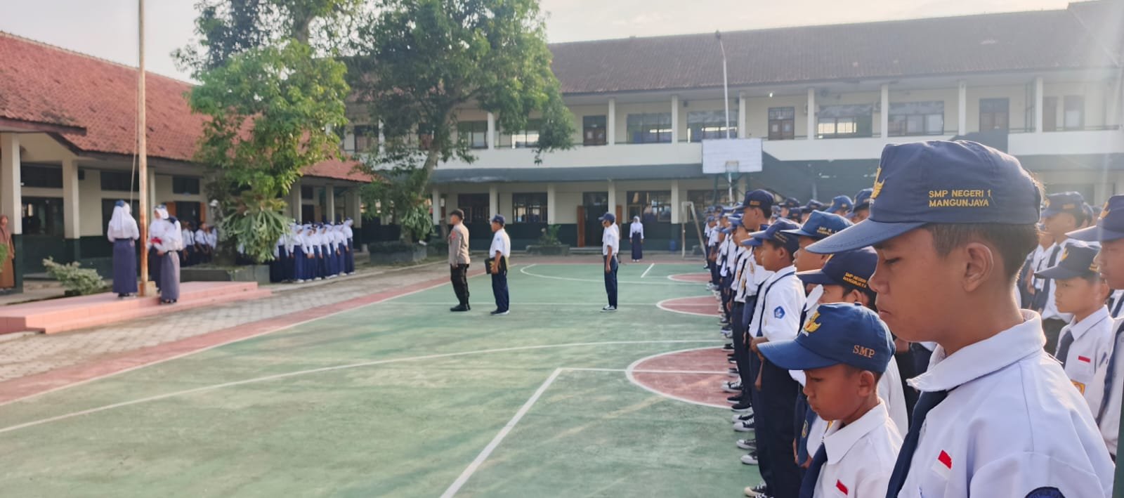 Pangandaran – Polsek Padaherang melaksanakan kegiatan pembinaan melalui upacara bendera di SMP Negeri 1 Mangunjaya, Kabupaten Pangandaran, sebagai upaya menanamkan kedisiplinan dan nilai-nilai kebangsaan kepada para pelajar.
