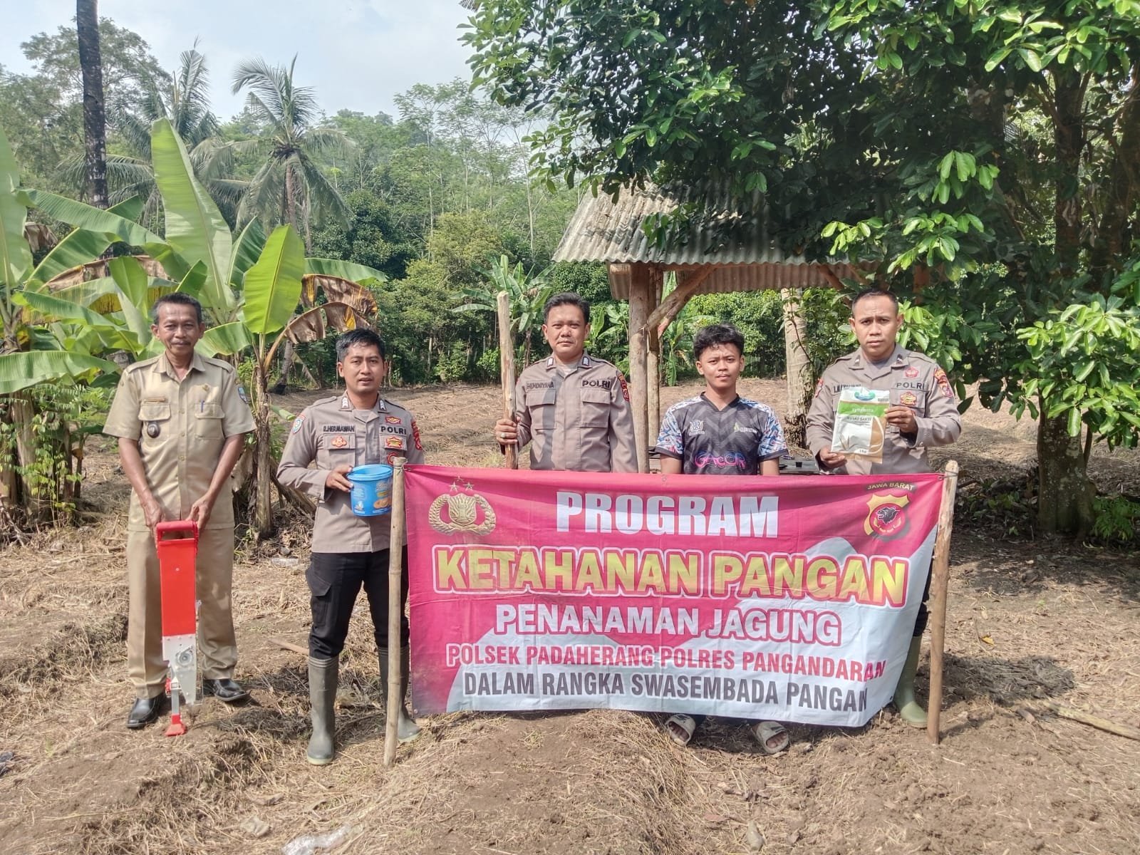 Pangandaran – Polsek Padaherang melaksanakan kegiatan penanaman jagung hibrida di lahan non-LBS yang berlokasi di Dusun Kawarasan, Desa Sindangwangi, Kecamatan Padaherang, Kabupaten Pangandaran, Senin (6/4/2026).