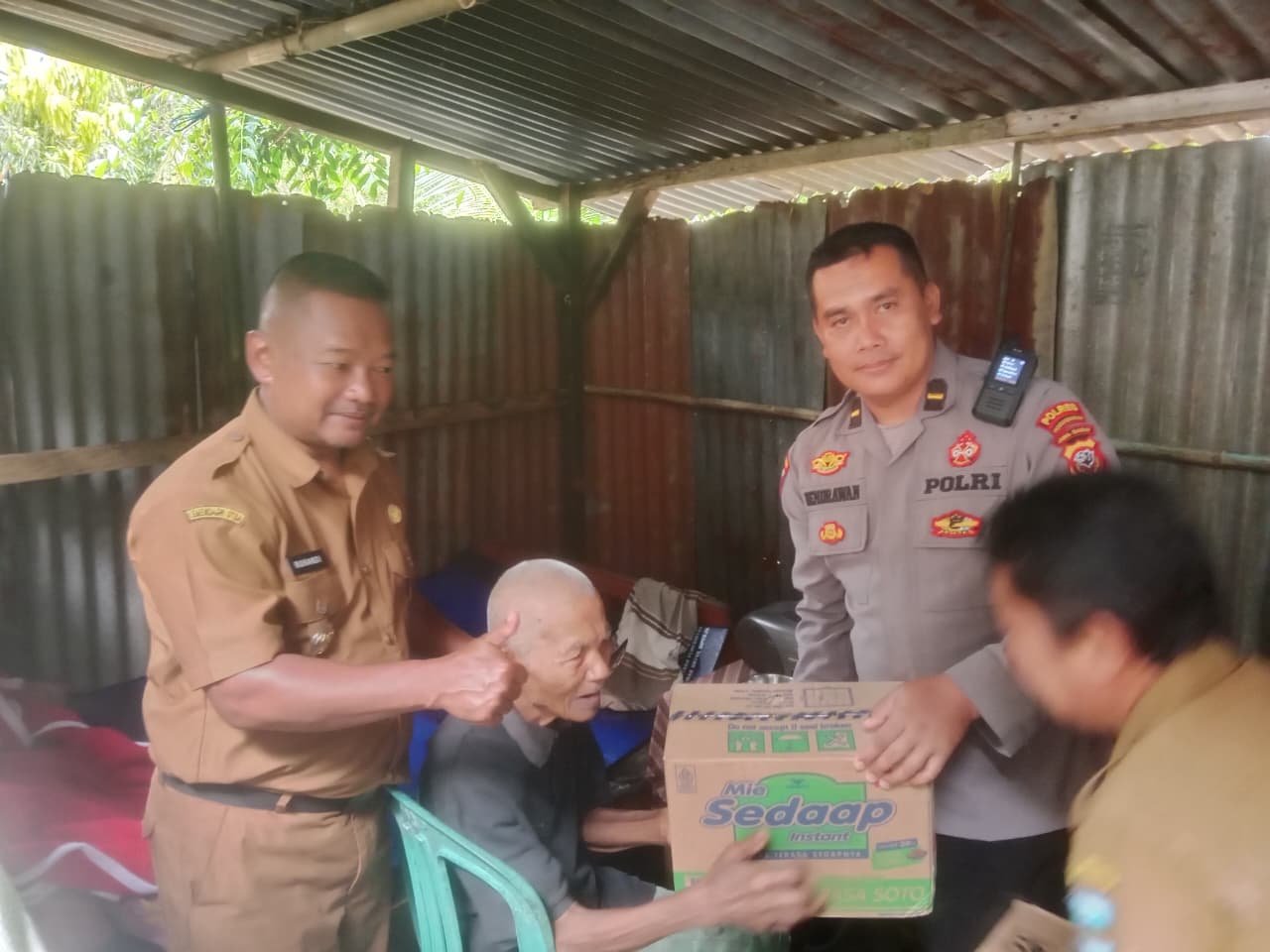 Kegiatan penyaluran bantuan berlangsung dengan suasana khidmat dan penuh kekeluargaan, serta disaksikan oleh perangkat desa setempat.