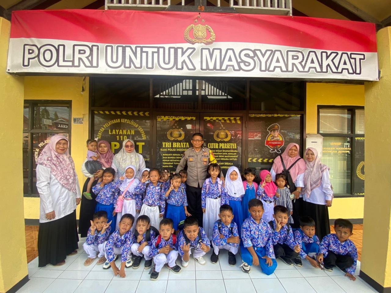 Kunjungan tersebut bertujuan untuk memberikan edukasi sejak dini kepada anak-anak agar lebih mengenal profesi kepolisian serta menumbuhkan rasa kedisiplinan, tanggung jawab, dan semangat melayani di lingkungan masyarakat.