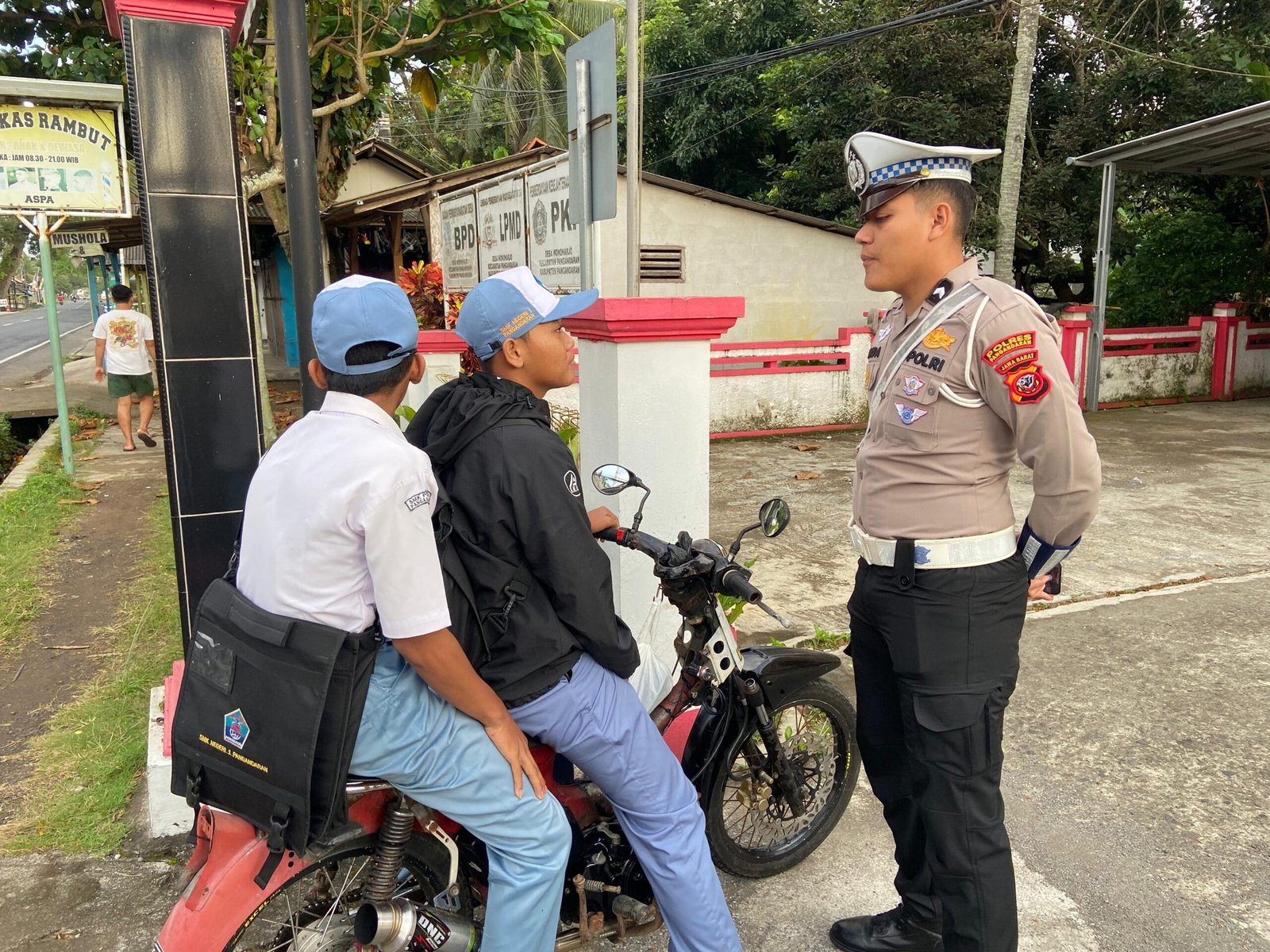 Pelajar tersebut diketahui mengendarai sepeda motor tanpa menggunakan helm serta tidak membawa surat-surat kendaraan yang lengkap. Petugas yang sedang bertugas di lokasi langsung menghentikan dan memberikan teguran sekaligus edukasi tentang pentingnya keselamatan berlalu lintas. Khususnya bagi pelajar yang belum cukup umur untuk mengendarai kendaraan bermotor.