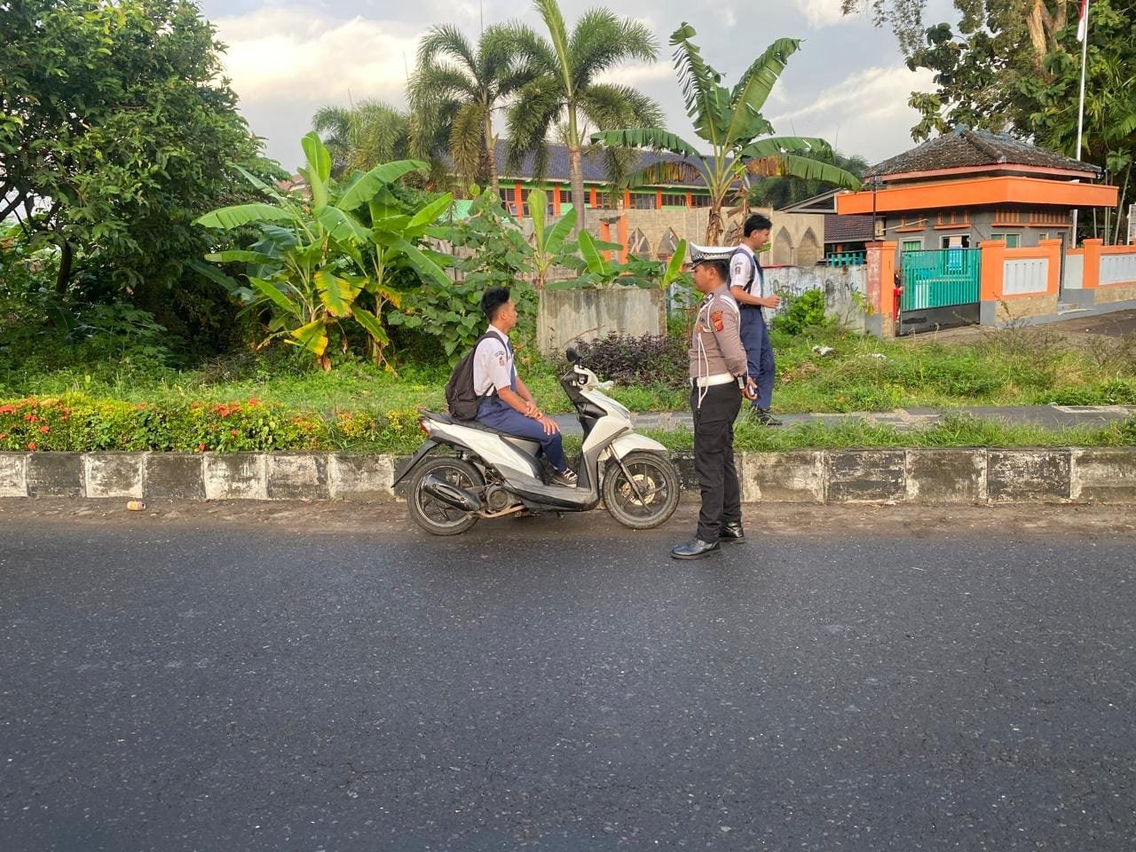 Petugas langsung memberikan teguran simpatik dan edukasi kepada pelajar yang bersangkutan. Menjelaskan pentingnya penggunaan helm untuk melindungi kepala dari risiko cedera serius saat terjadi kecelakaan.