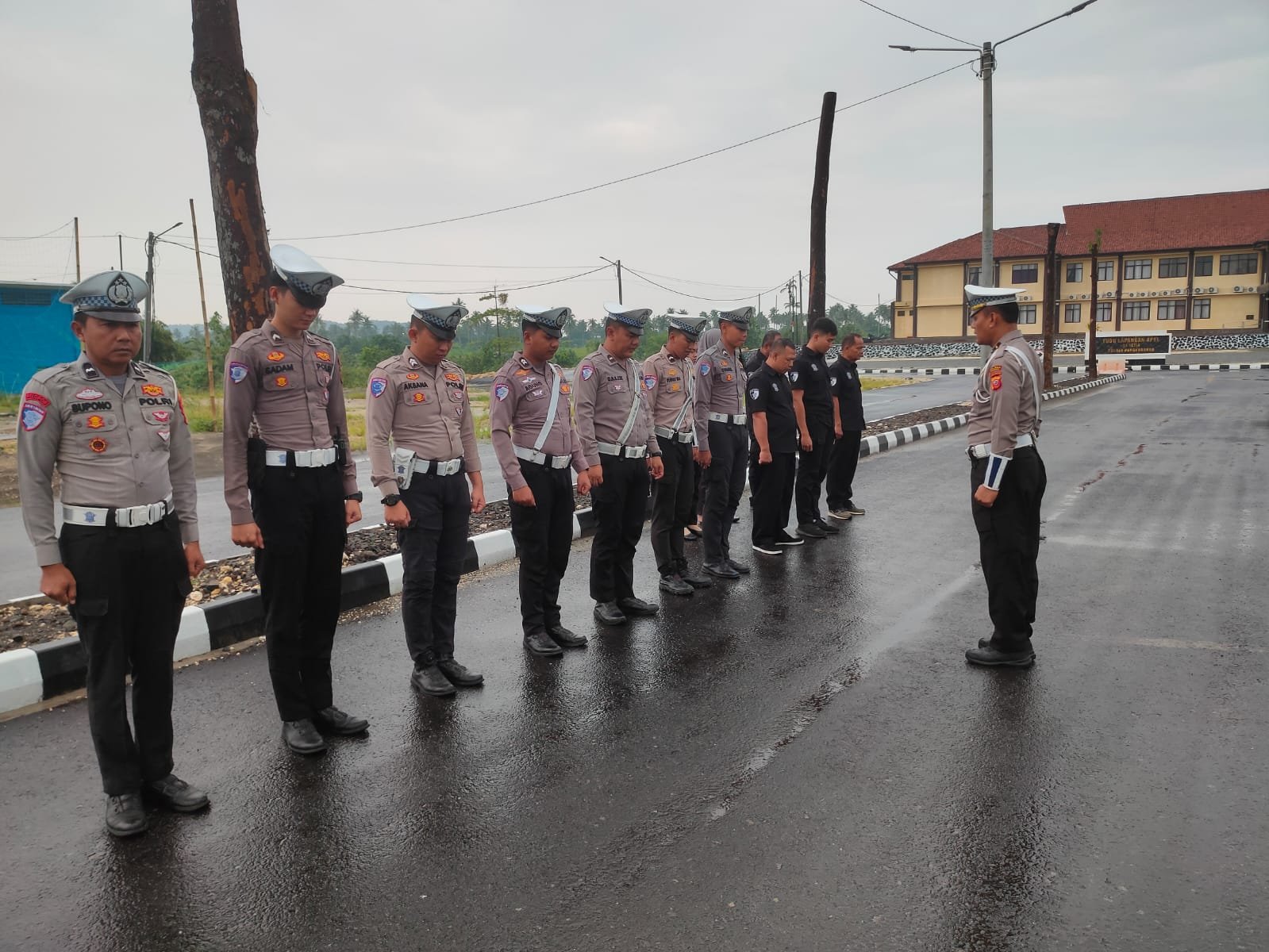 Dalam suasana yang masih basah, para anggota tetap menunjukkan kedisiplinan serta komitmen dalam menjalankan tugas sebagai pelayan masyarakat. Apel pagi ini dipimpin oleh pimpinan satuan yang sekaligus memberikan arahan dan himbauan kepada seluruh personel.