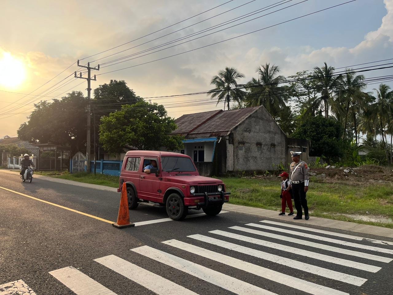 “Kami hadir di sini bukan hanya menjalankan tugas, tetapi juga sebagai bentuk kepedulian kami kepada masyarakat. Terutama anak-anak sekolah yang harus dijaga keselamatannya saat berangkat menuntut ilmu,” ungkapnya.
