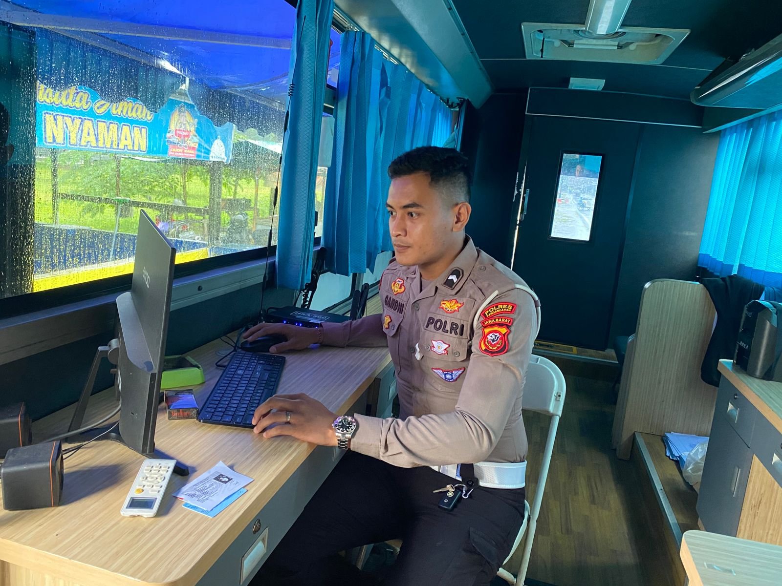Petugas Satlantas Polres Pangandaran secara aktif melayani proses perpanjangan SIM, mulai dari pemeriksaan berkas, verifikasi data, hingga penerbitan SIM. Petugas juga memberikan arahan secara langsung kepada masyarakat terkait persyaratan.