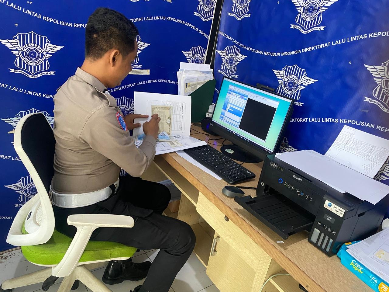 Petugas melakukan pemeriksaan secara langsung terhadap nomor rangka dan nomor mesin kendaraan. Petugas juga memastikan data tersebut dengan dokumen resmi yang terdapat pada kendaraan masyarakat. Selain itu personel juga memberikan arahan dan informasi kepada masyarakat terkait prosedur dan administrasi.