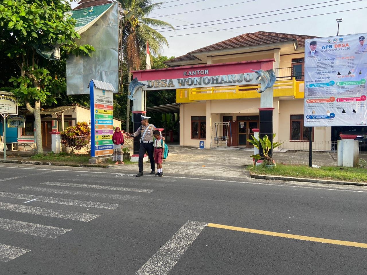 Personel Satlantas tampak sigap mengatur arus kendaraan, membantu siswa menyeberang, serta memberikan imbauan kepada pengendara agar lebih berhati-hati dan mematuhi aturan lalu lintas.