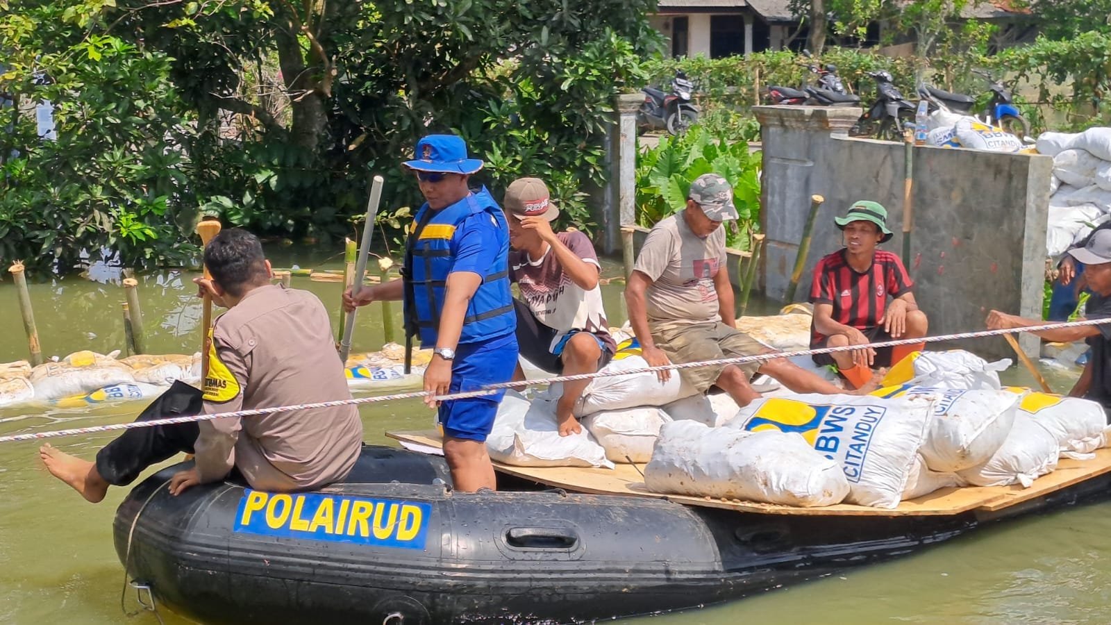 Dengan sigap, personel Satpolairud bergotong royong bersama masyarakat membangun tanggul sementara dari karung pasir dan material seadanya untuk menahan arus air agar tidak meluas dan menggenangi permukiman warga. Aksi tanggap darurat ini dilakukan di beberapa titik yang rawan banjir, dengan melibatkan personel kepolisian, aparatur desa, serta masyarakat sekitar.