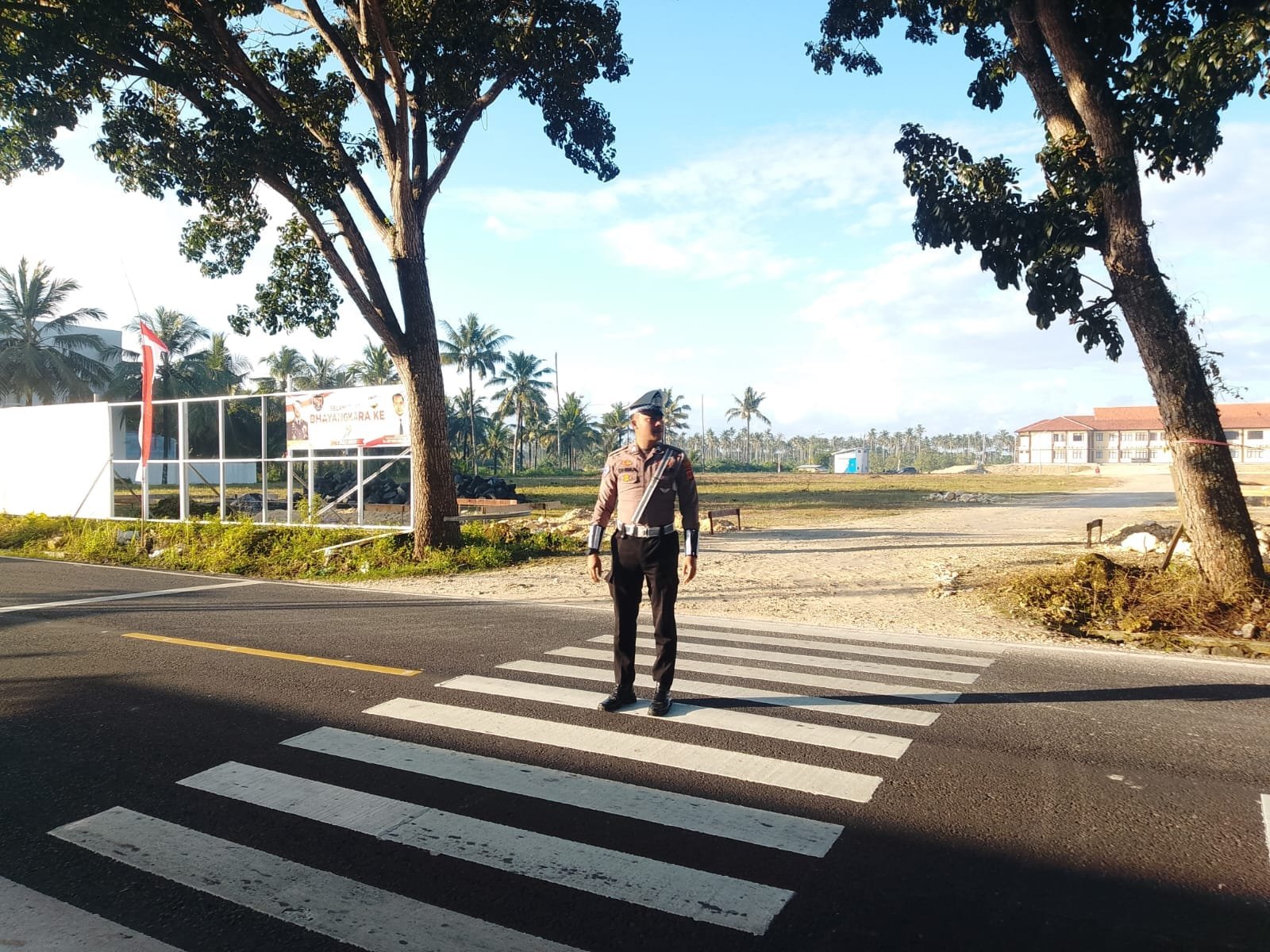 Anggota polisi yang berdiri tegak di tengah zebra cross menyambut masyarakat yang ingin melintas. Dengan menggunakan seragam yang rapi dan dilengkapi perlengkapan tugas, para petugas menunjukkan profesionalisme dan dedikasi mereka dalam melayani masyarakat. Tugas ini menjadi hal penting, terutama di saat masyarakat mulai berangkat ke sekolah dan tempat kerja.