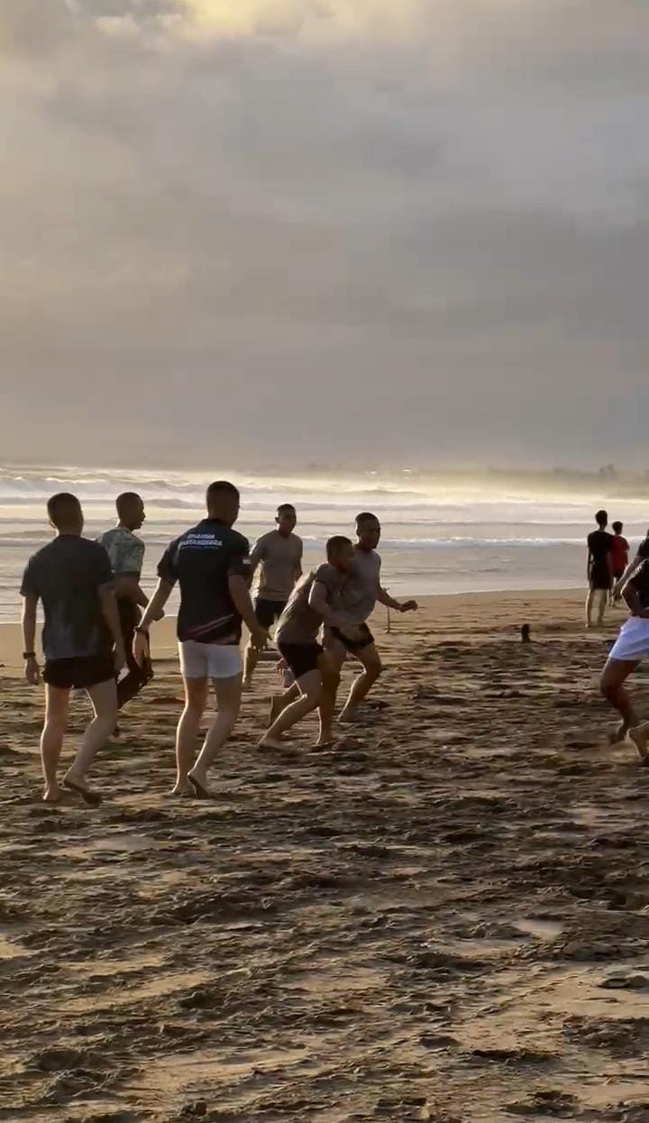 Selain untuk menjaga kebugaran fisik, kegiatan bermain bola di tepi pantai ini juga menjadi sarana hiburan dan mempererat kekompakan antar anggota Sat Samapta. Nampak para personel menikmati momen tersebut dengan penuh semangat dan tawa.