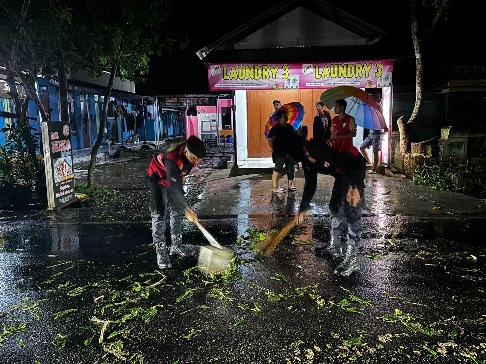 Kejadian pohon tumbang tersebut terjadi akibat hujan deras disertai angin kencang yang melanda wilayah Pangandaran. Sebagian besar badan jalan tertutup batang dan ranting pohon, sehingga mengganggu arus lalu lintas dan membahayakan pengguna jalan.