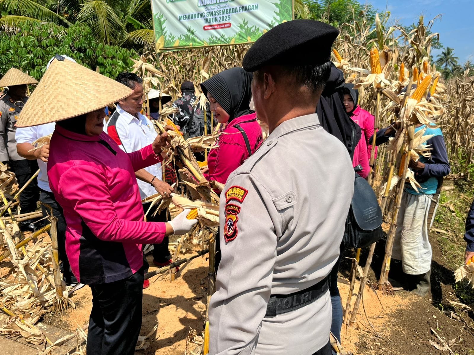 Dalam rangka mendukung program nasional ketahanan pangan, Kanit Pengamanan Obyek Vital (Pamobvit) Polres Pangandaran turun langsung menghadiri kegiatan Panen Raya Jagung yang berlangsung di lahan pertanian di Kec. Cimerak, Kabupaten Pangandaran.