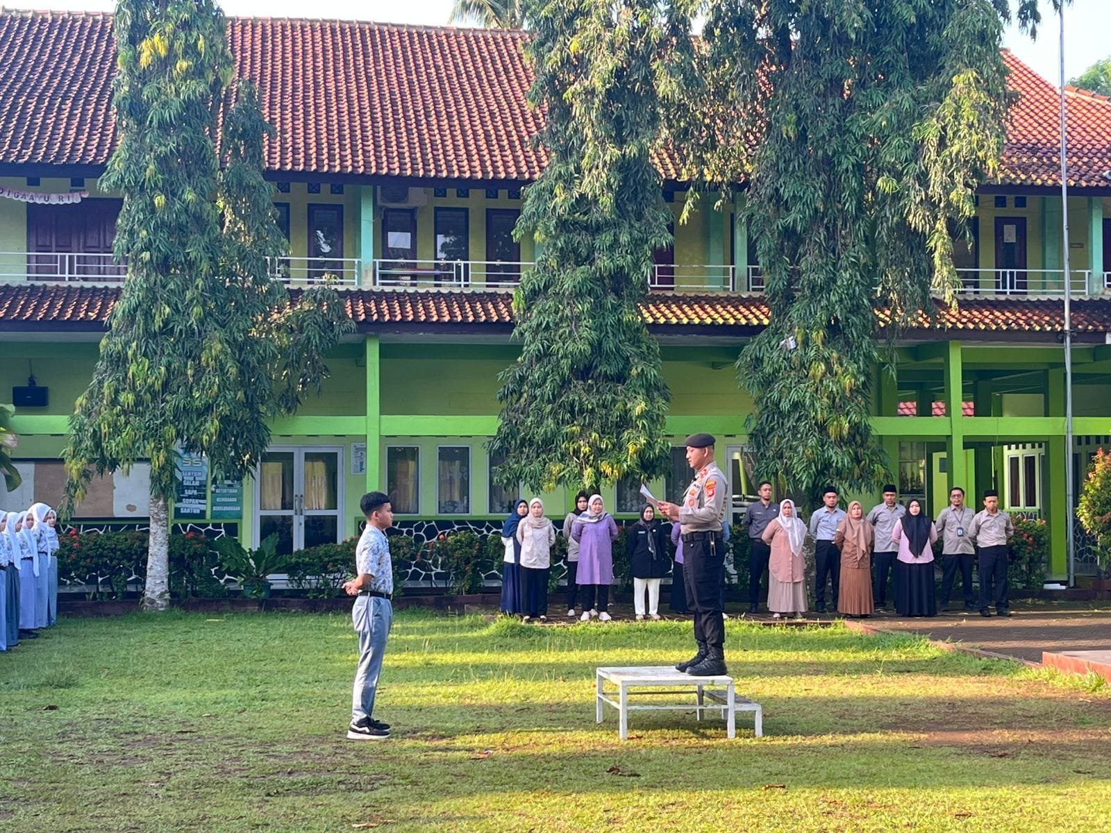 Pangandaran – Kasat Samapta Polres Pangandaran memimpin apel pagi di SMAN 1 Parigi sebagai bentuk kepedulian kepolisian terhadap generasi muda. Dalam kesempatan tersebut, beliau menyampaikan pesan penting kepada para siswa agar menjauhi narkoba dan tidak terlibat dalam aksi geng motor yang meresahkan masyarakat.