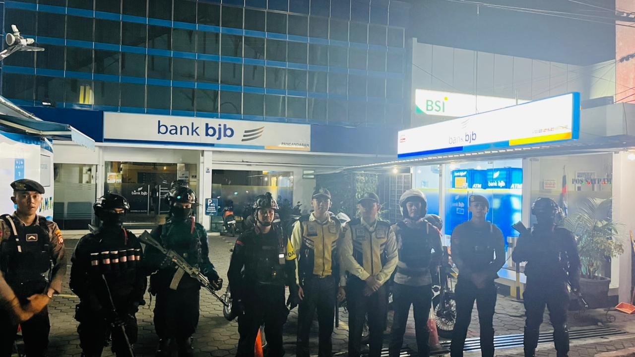 Pangandaran – Dalam upaya menjaga keamanan dan ketertiban masyarakat, personel Sat Samapta Polres Pangandaran melaksanakan patroli dialogis malam hari dengan menyasar objek vital perbankan di wilayah hukum Polres Pangandaran.