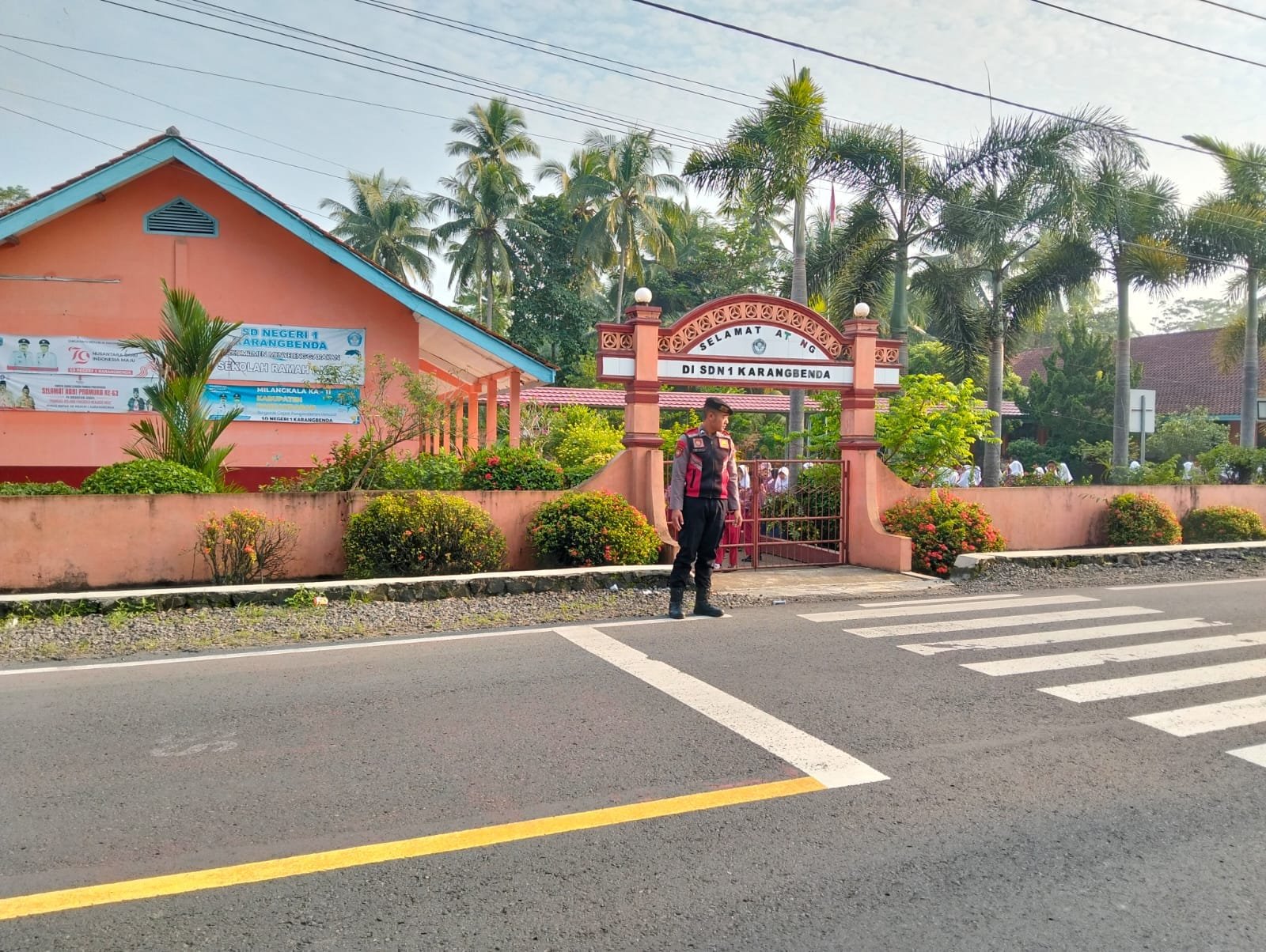 Setiap pagi, suasana di depan SDN 01 Karangbenda, Kabupaten Pangandaran, menjadi ramai oleh aktivitas para siswa, orang tua, dan kendaraan yang lalu lalang. Untuk menjaga kelancaran arus lalu lintas serta memastikan keselamatan para pelajar saat menyeberang jalan, anggota Satsamapta dari Polres Pangandaran rutin melaksanakan tugas pengaturan lalu lintas. Kegiatan ini dimulai sejak pukul 06.30 WIB, tepat saat arus kendaraan mulai meningkat.