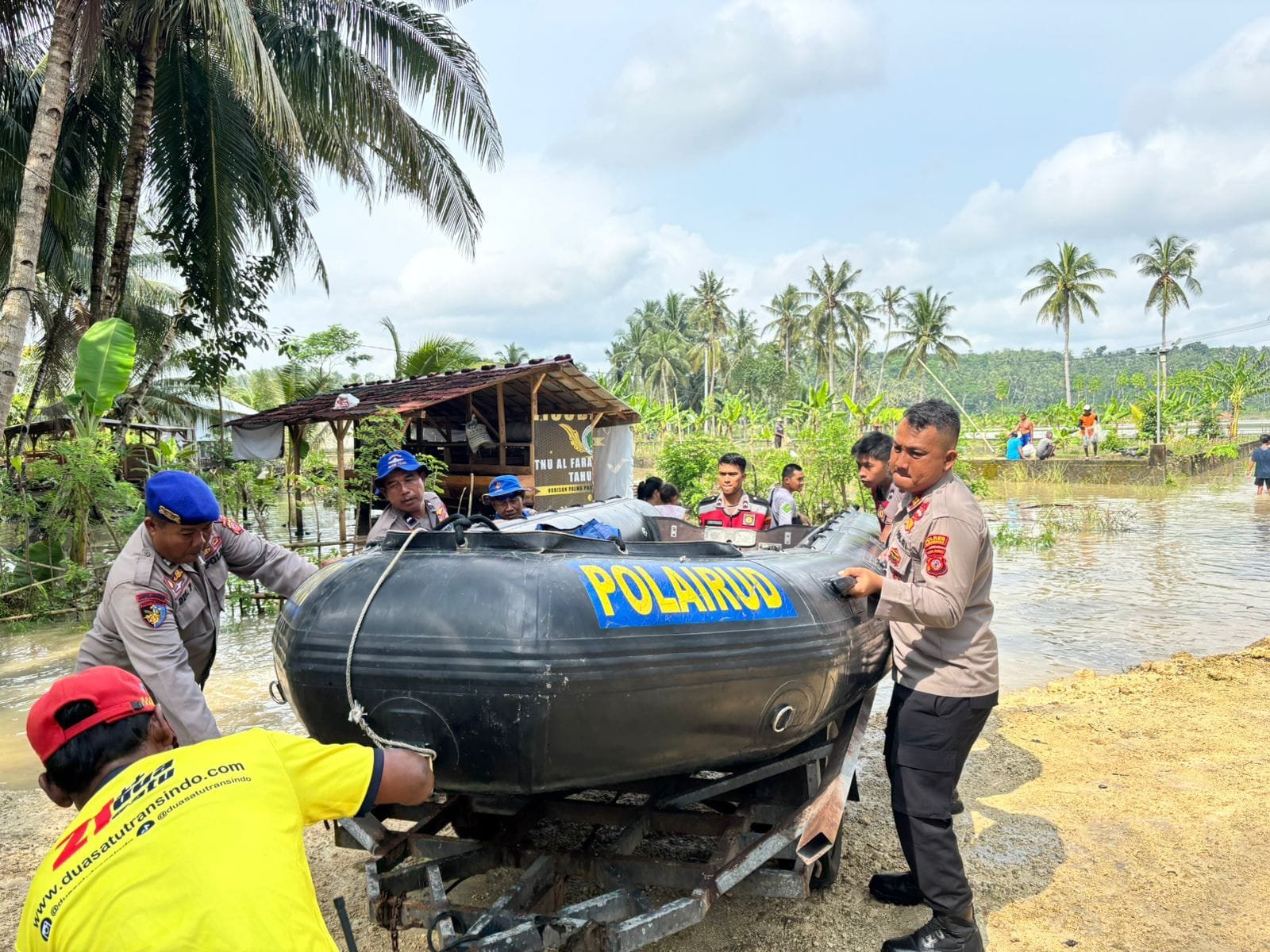 Mendapat laporan dari masyarakat, personel Sat Samapta langsung bergerak ke lokasi bersama unsur pemerintah desa dan Tagana Pangandaran untuk melakukan evakuasi. Dengan menggunakan kendaraan taktis dan perlengkapan keselamatan, petugas membantu mengevakuasi warga, terutama lansia, anak-anak, dan ibu hamil, ke tempat yang lebih aman.