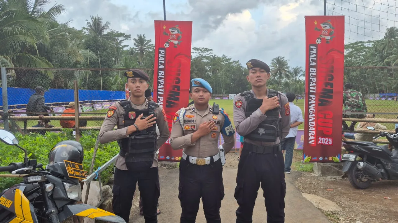 Pangandaran, 16 September 2025 – Anggota Satuan Samapta Polres Pangandaran melaksanakan kegiatan pengamanan (pam) pertandingan sepak bola yang berlangsung di daerah Karang Benda pada Selasa (16/9). Kegiatan ini dilakukan sebagai bentuk antisipasi potensi gangguan keamanan serta menjaga situasi tetap aman dan kondusif selama jalannya acara olahraga tersebut.