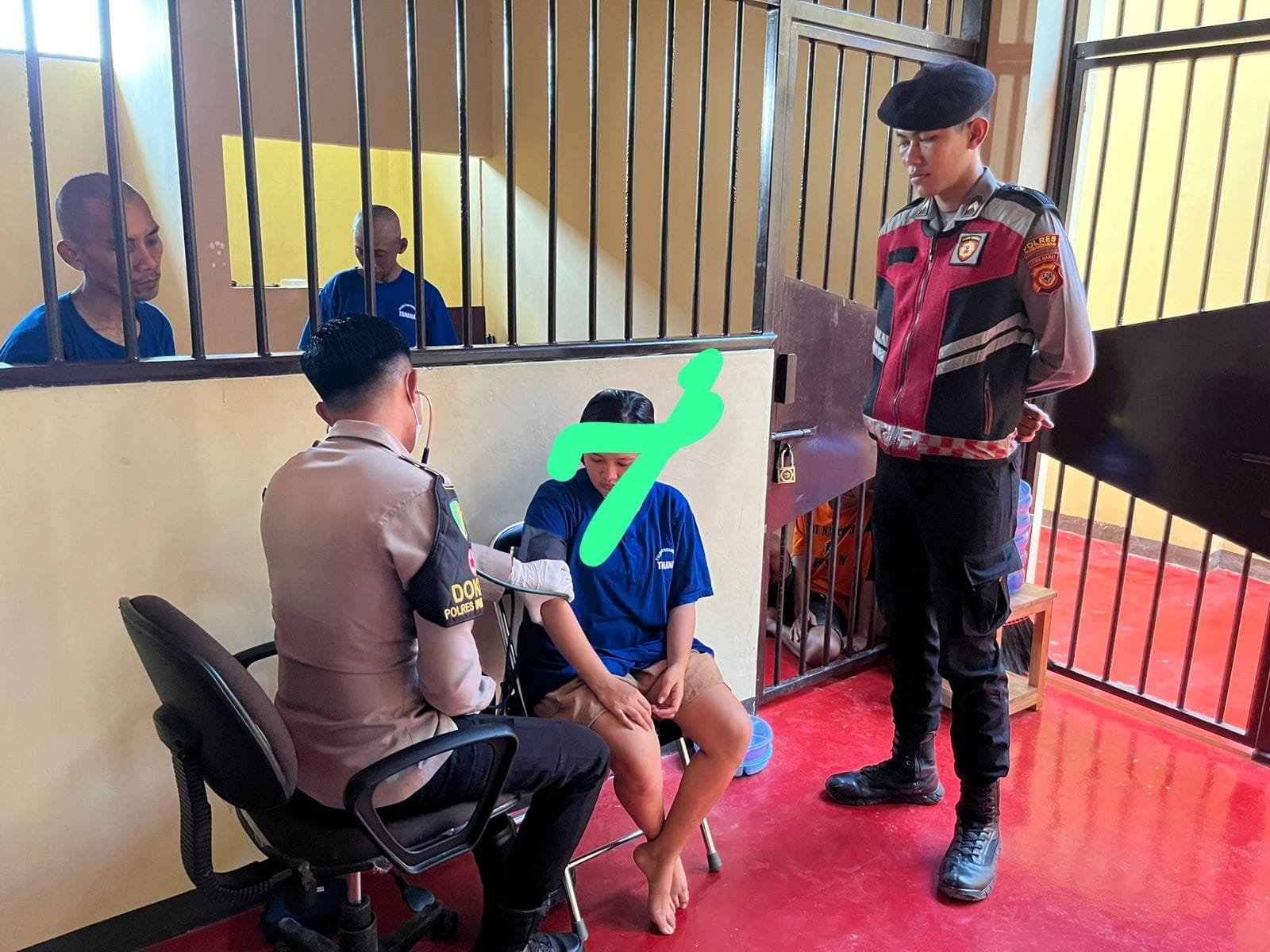 Sat Samapta Polres Pangandaran melaksanakan kegiatan pengecekan kesehatan terhadap para tahanan yang berada di ruang tahanan Mapolres. Kegiatan ini merupakan bagian dari upaya kepolisian dalam memastikan kondisi fisik para tahanan tetap terjaga selama menjalani proses hukum. Pemeriksaan dilakukan secara berkala dengan menggandeng petugas kesehatan guna mendeteksi sejak dini gejala penyakit atau keluhan yang dirasakan oleh para tahanan.