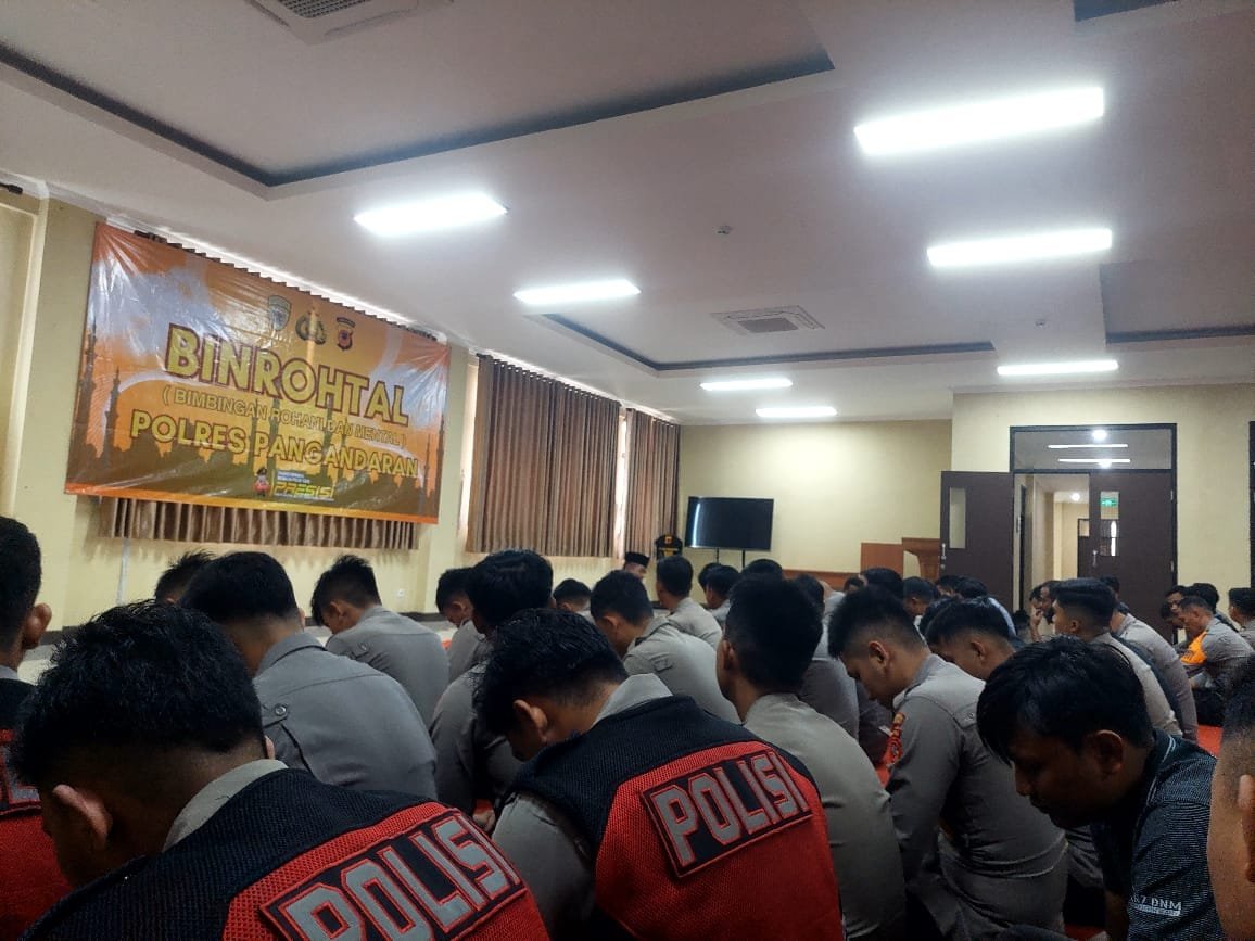 Pangandaran – Anggota Satuan Samapta Polres Pangandaran melaksanakan kegiatan Pembinaan Rohani dan Mental (Binrohtal) yang digelar rutin sebagai wadah meningkatkan keimanan, ketakwaan, serta membentuk kepribadian yang berkarakter bagi setiap personel.