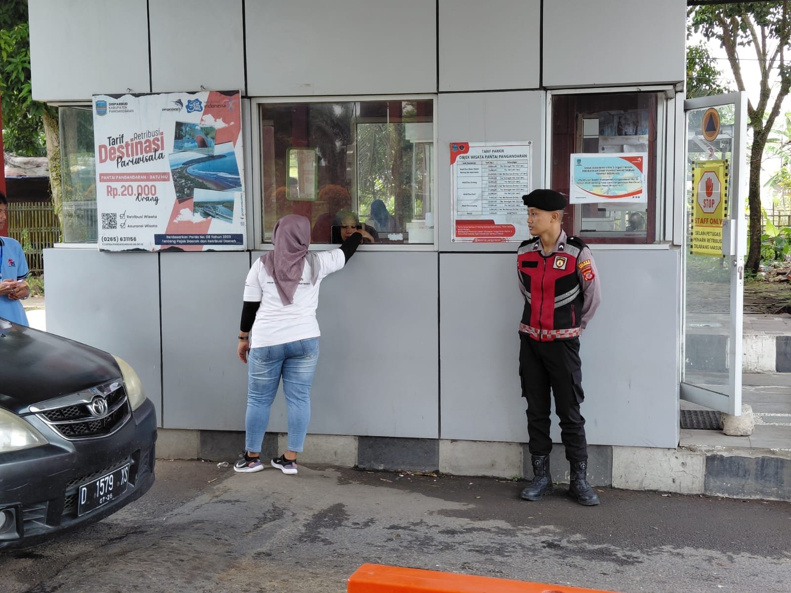 Pangandaran – Sejumlah personel Sat Samapta Polres Pangandaran melaksanakan kegiatan Pengamanan Objek Wisata (Pamobwis) di gerbang utama area wisata Pantai Pangandaran pada hari Minggu (27/7/2025). Kegiatan ini digelar sebagai wujud kehadiran negara untuk menjaga keamanan, ketertiban, serta kenyamanan para pelancong di salah satu destinasi andalan Jawa Barat tersebut.