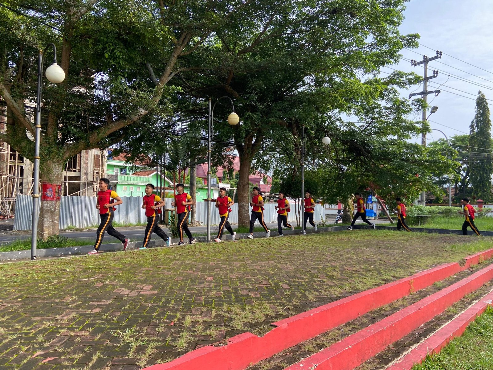 Salah satu bagian dari rangkaian kesamaptaan tersebut adalah tes lari, yang menjadi indikator penting dalam menilai daya tahan dan kekuatan fisik setiap anggota. Para personel mengikuti lari dengan penuh semangat, menunjukkan komitmen dalam menjaga kebugaran tubuh sebagai bagian dari kesiapan mereka menjalankan tugas di lapangan.