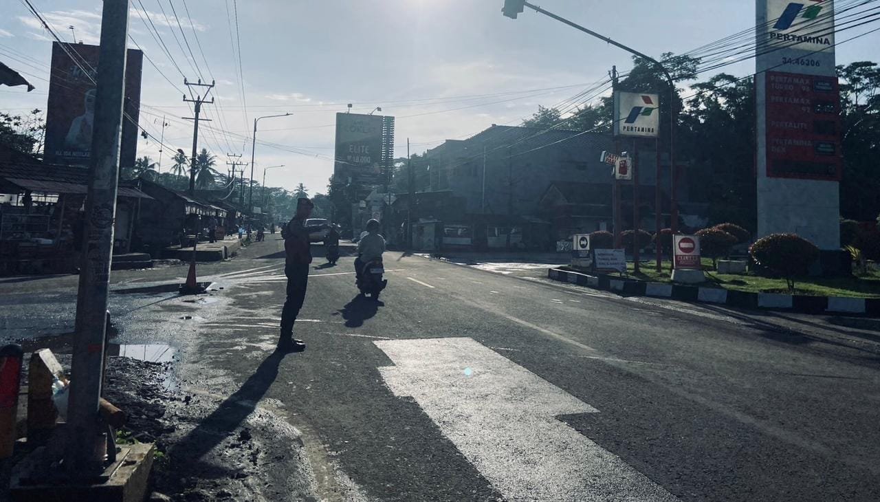 Personel Polres Pangandaran kembali melaksanakan kegiatan rutin pengaturan lalu lintas pagi hari di SP 3 SPBU Parigi yang terletak di Jalan Raya Parigi, Kecamatan Parigi, Kabupaten Pangandaran. Kegiatan ini merupakan bagian dari upaya menjaga kelancaran arus lalu lintas di wilayah tersebut.