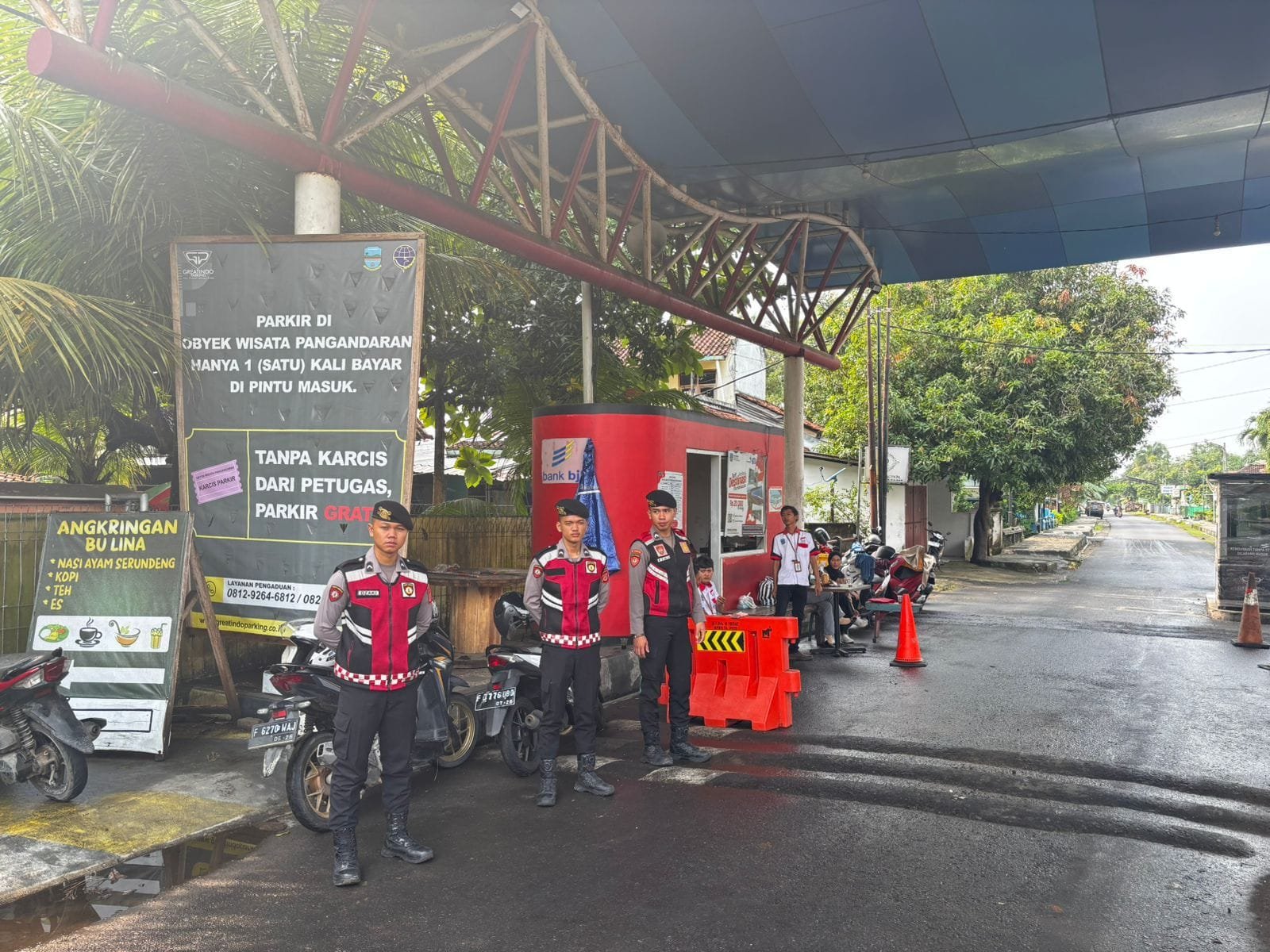 PERSONEL POLRES PANGANDARAN RUTIN MELAKSANAKAN PATROLI KE GATE MASUK WISATA PANTAI BARAT PANGANDARAN