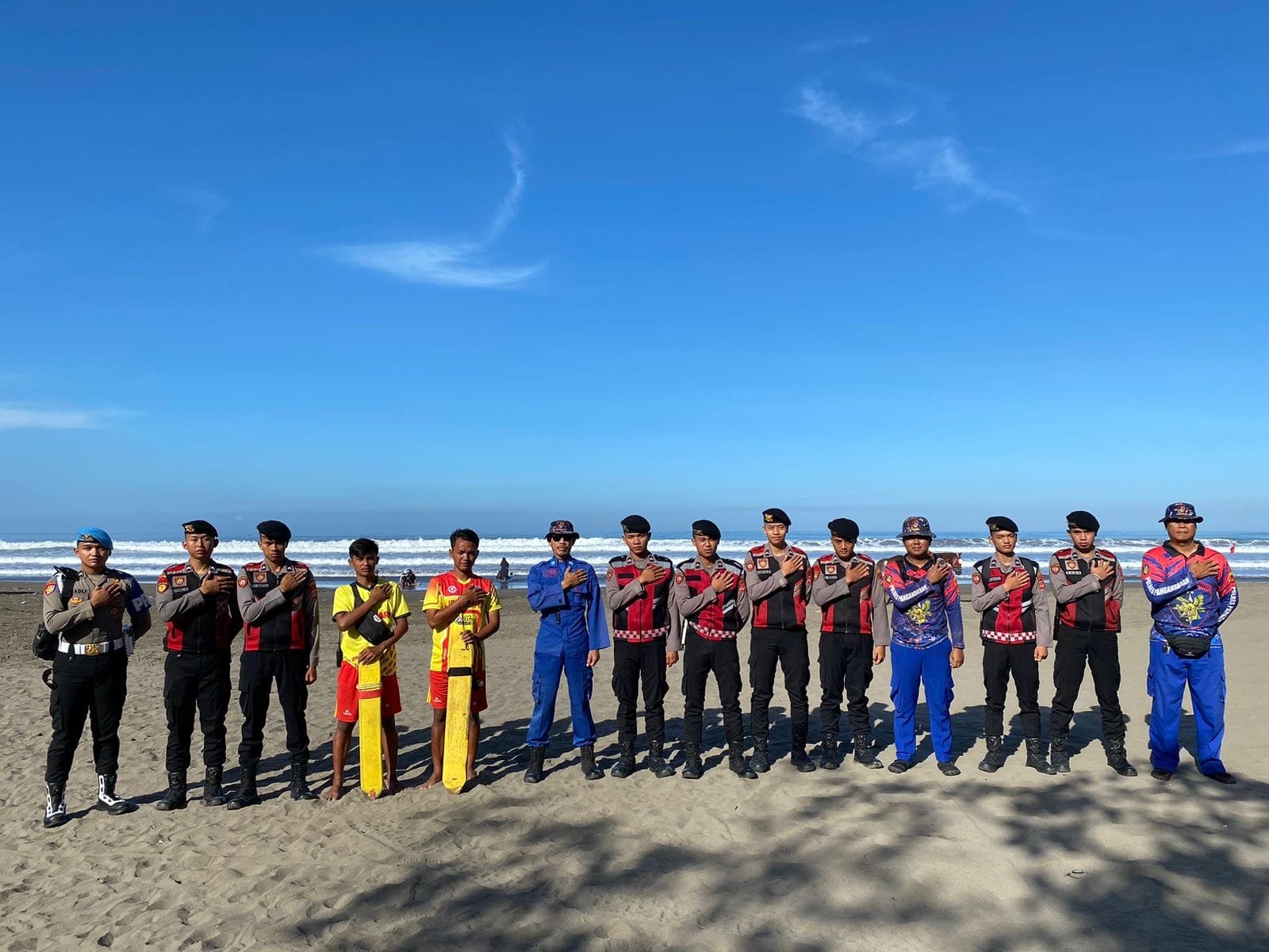 PERSONEL POLRES PANGANDARAN RUTIN MELAKSANAKAN PENGAMANAN OBJEK WISATA DI PANTAI BARAT PANGANDARAN