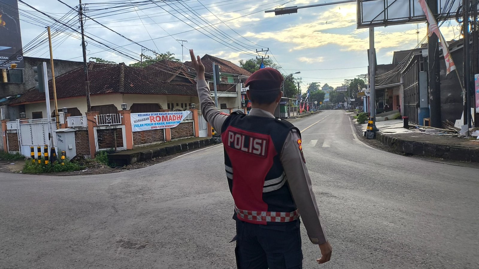 Personel Polres Pangandaran hadir sejak pagi hari untuk mengatur kendaraan yang melintas serta membantu masyarakat menyeberang jalan dengan aman.