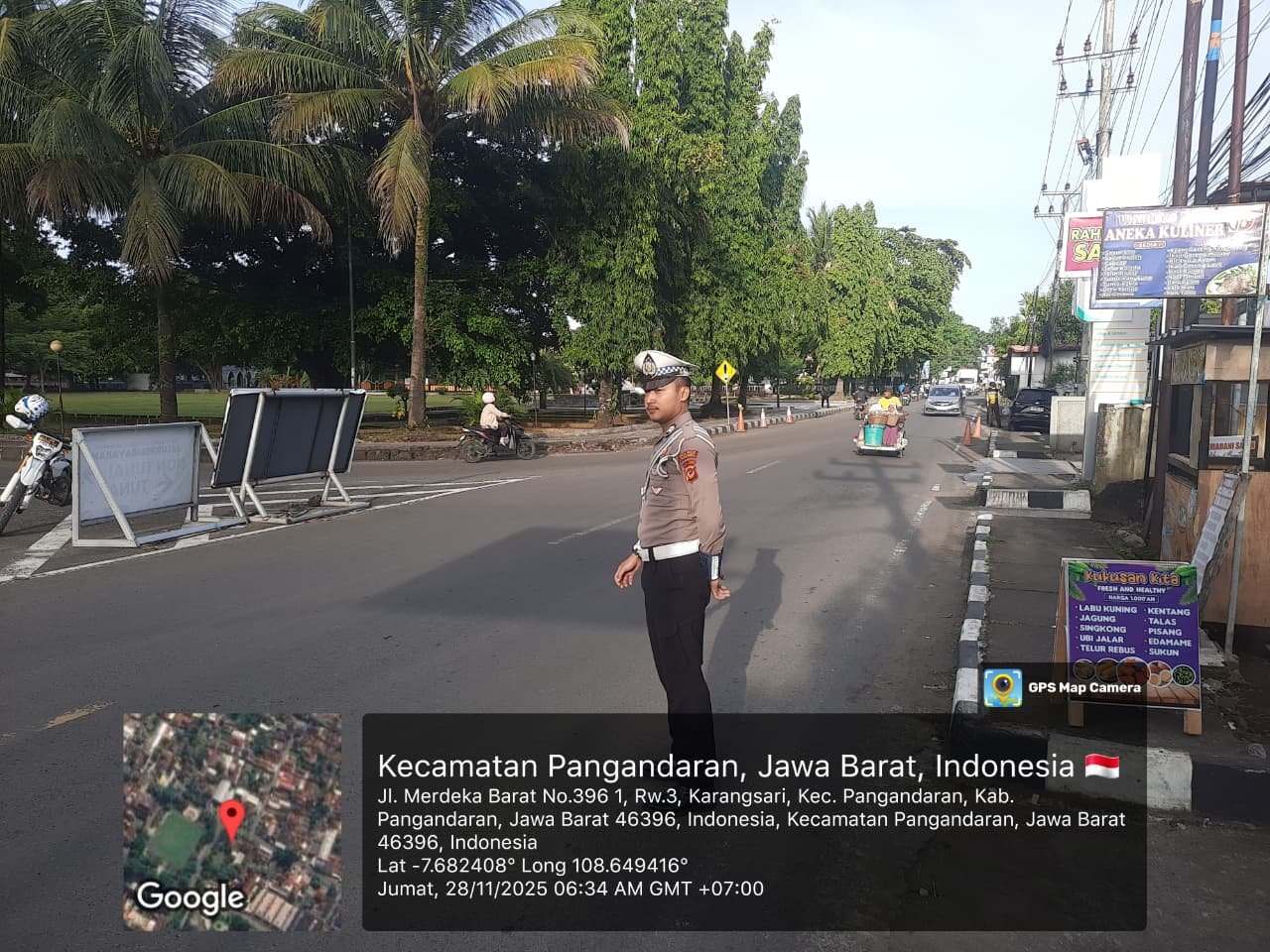 Polres Pangandaran melaksanakan kegiatan Gatur Pagi di Jalan Merdeka, salah satu ruas jalan utama di Pangandaran, untuk menjaga kelancaran arus lalu lintas dan meningkatkan keamanan pengguna jalan pada pagi hari.
