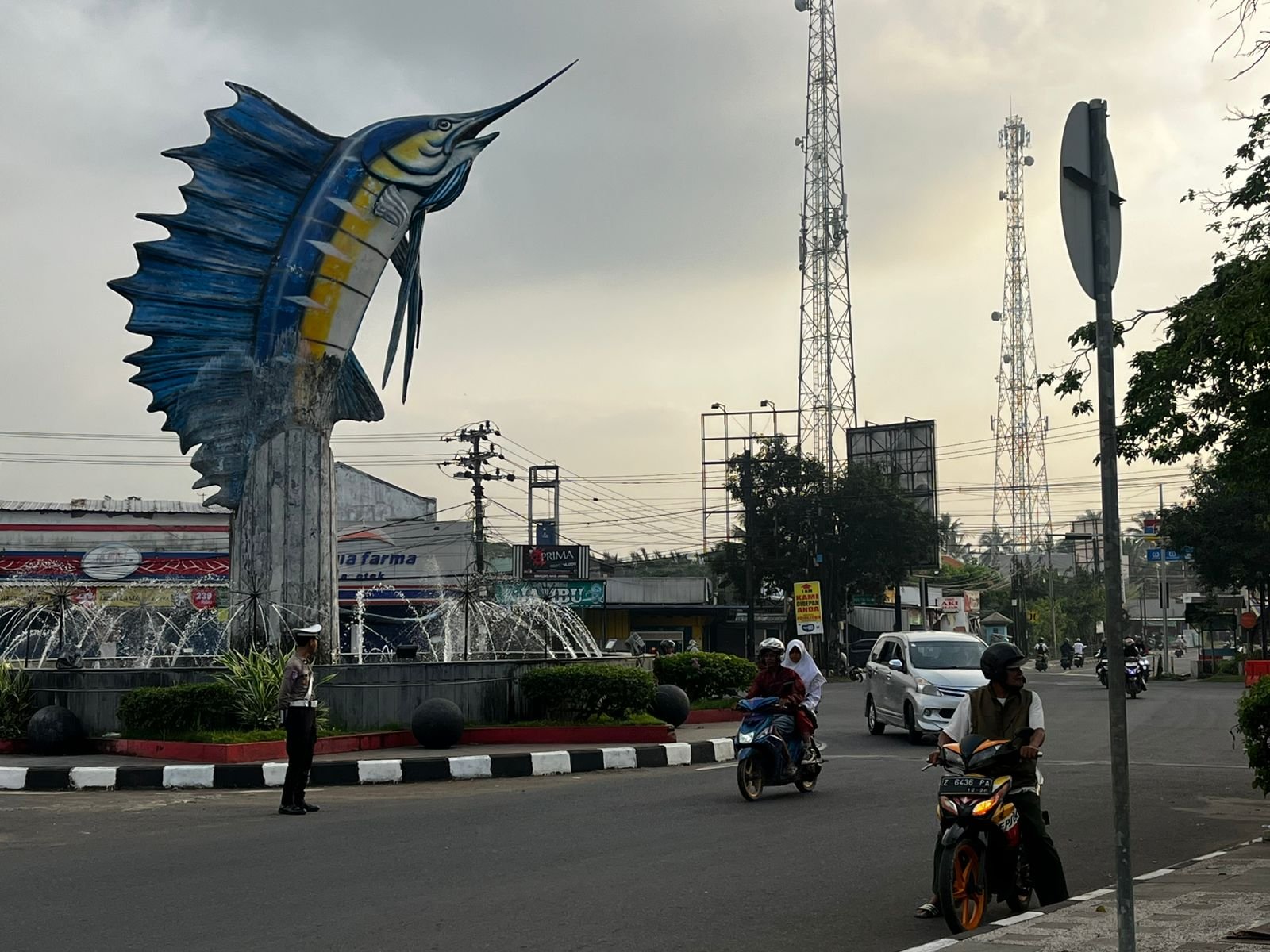 Tugu Bundaran Marlin dipilih sebagai lokasi prioritas karena merupakan simpul lalu lintas yang cukup padat, terutama di jam-jam sibuk pagi. Kawasan ini juga menjadi akses utama menuju destinasi wisata, sehingga pengaturan lalu lintas yang baik sangat diperlukan untuk mencegah kemacetan dan kecelakaan.