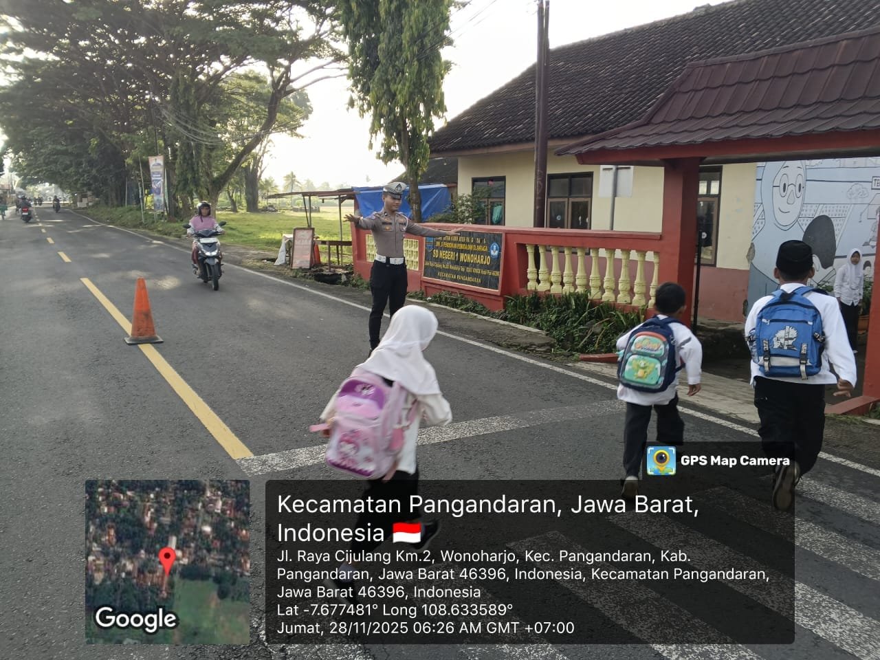 Kegiatan Gatur Pagi di SDN 1 Wonoharjo menjadi salah satu bukti nyata komitmen POLRES Pangandaran dalam melindungi masyarakat khususnya pelajar, demi mencegah kecelakaan dan menciptakan kondisi lalu lintas yang tertib dan aman setiap harinya.