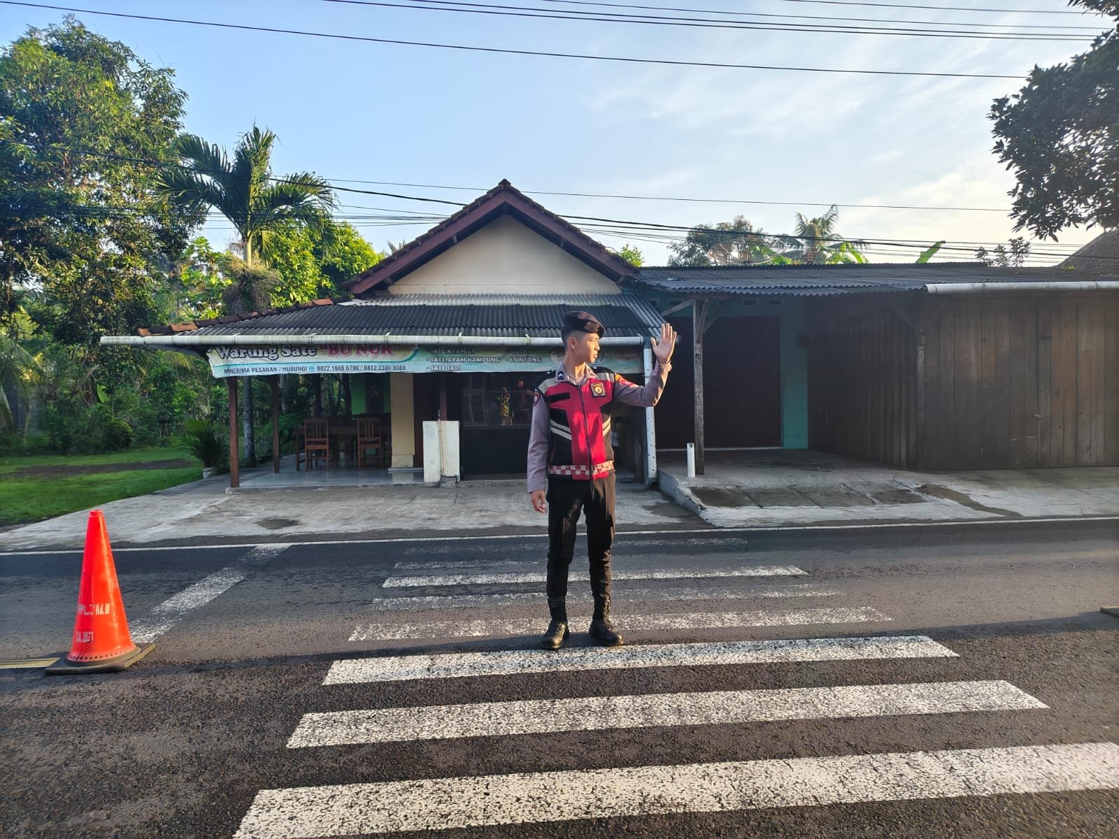 Personel Polres Pangandaran dengan sigap mengatur arus lalu lintas di depan SDN 1 Cikembulan. Mereka membantu menyeberangkan siswa serta mengarahkan kendaraan agar tidak menimbulkan kemacetan di area sekolah.