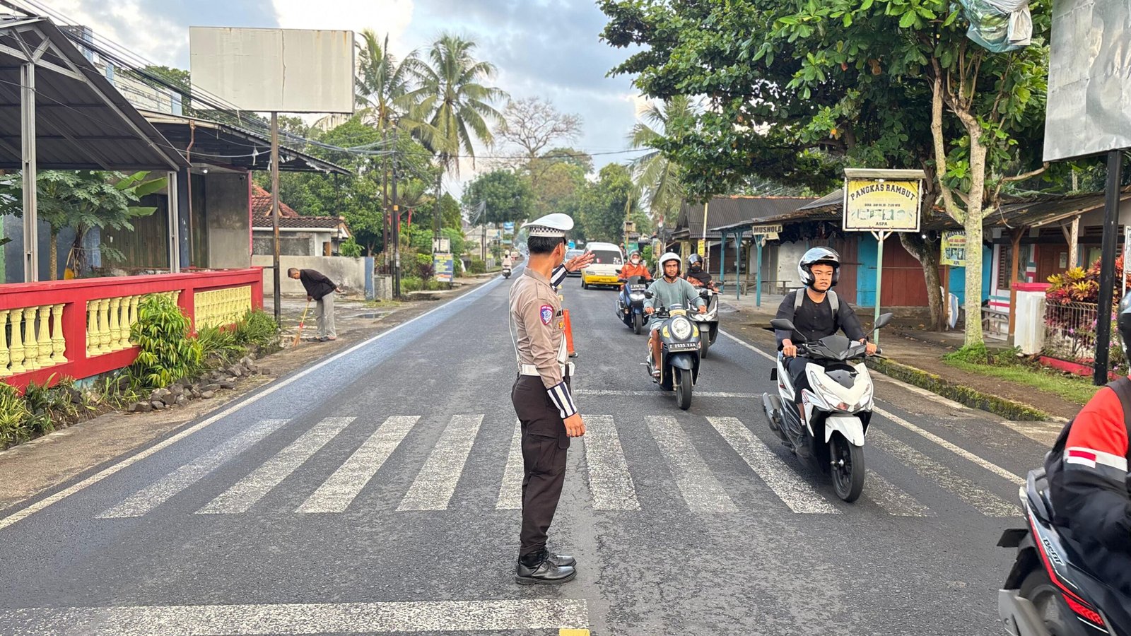 Selain mengatur lalu lintas, petugas juga memberikan edukasi singkat kepada pengendara mengenai pentingnya disiplin berlalu lintas, seperti mematuhi rambu-rambu dan menyesuaikan kecepatan agar tidak membahayakan diri sendiri maupun orang lain.
