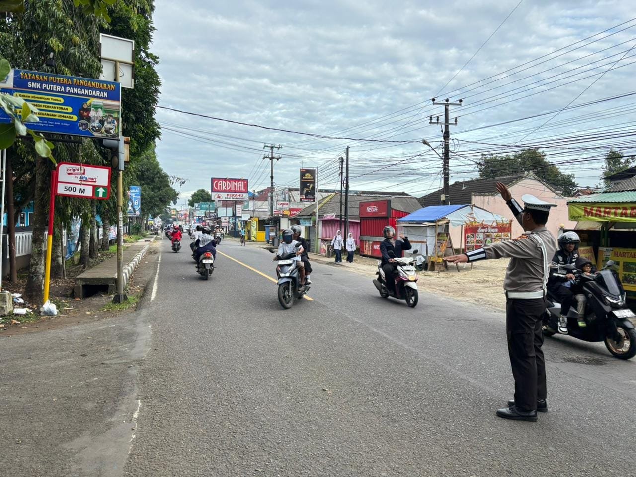 Polres Pangandaran melaksanakan kegiatan pengaturan lalu lintas pagi rutin di Jalan Merdeka, Pangandaran, Selasa pagi. Kegiatan ini bertujuan untuk memastikan kelancaran arus kendaraan dan keselamatan pengguna jalan di kawasan yang sering padat pada jam sibuk. Personel kepolisian terlihat sigap mengatur kendaraan yang melintas agar tidak terjadi kemacetan.