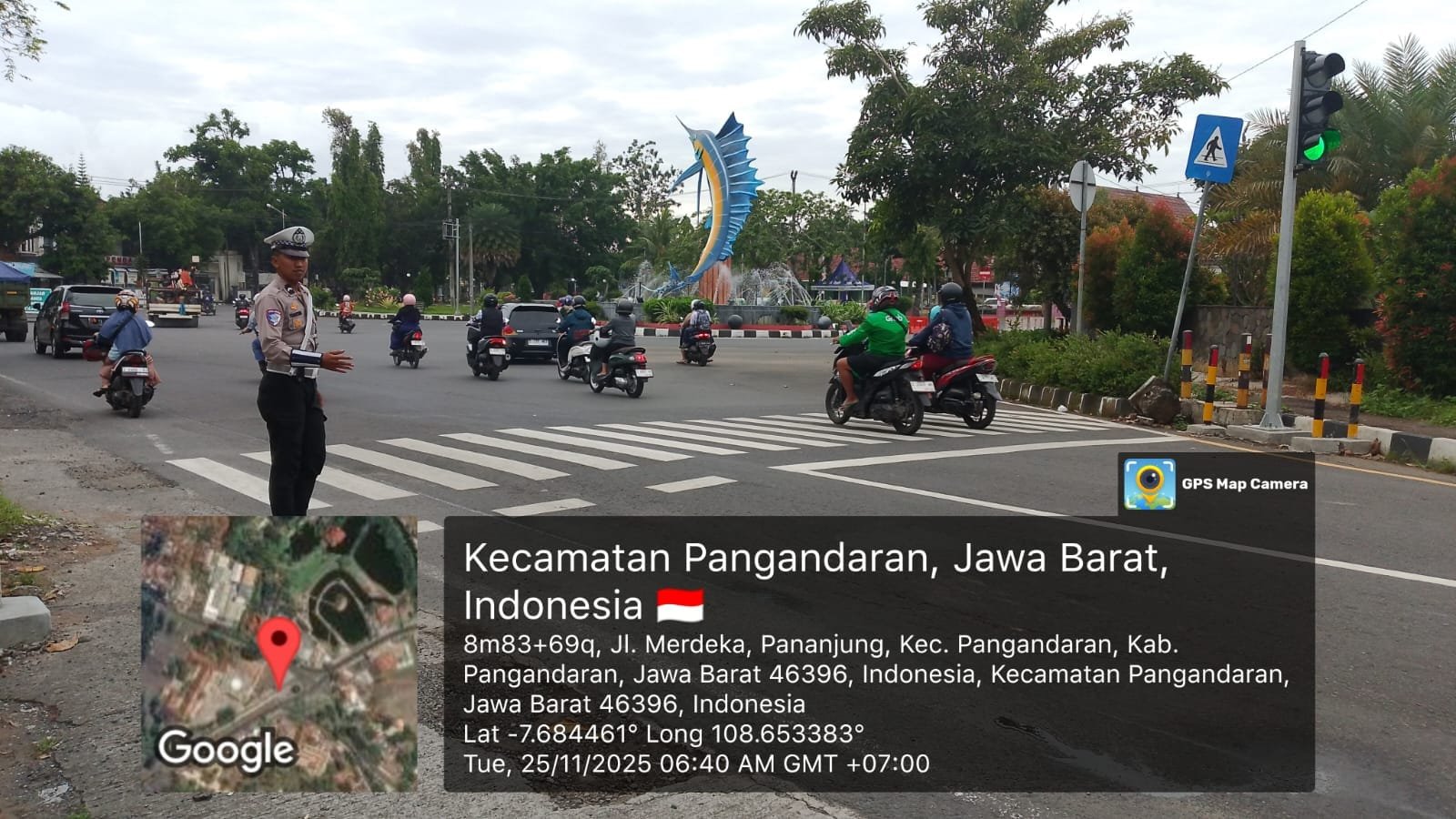 Kasat Lantas Polres Pangandaran, menyampaikan bahwa pengaturan lalu lintas di sekitar Tugu Marlin dilakukan setiap pagi mulai pukul 06.00 sampai 08.00 WIB, terutama saat jam sibuk masyarakat beraktivitas dan wisatawan mulai berdatangan. “Ini menjadi titik rawan kemacetan, sehingga perlu pengaturan yang intensif,” jelasnya.