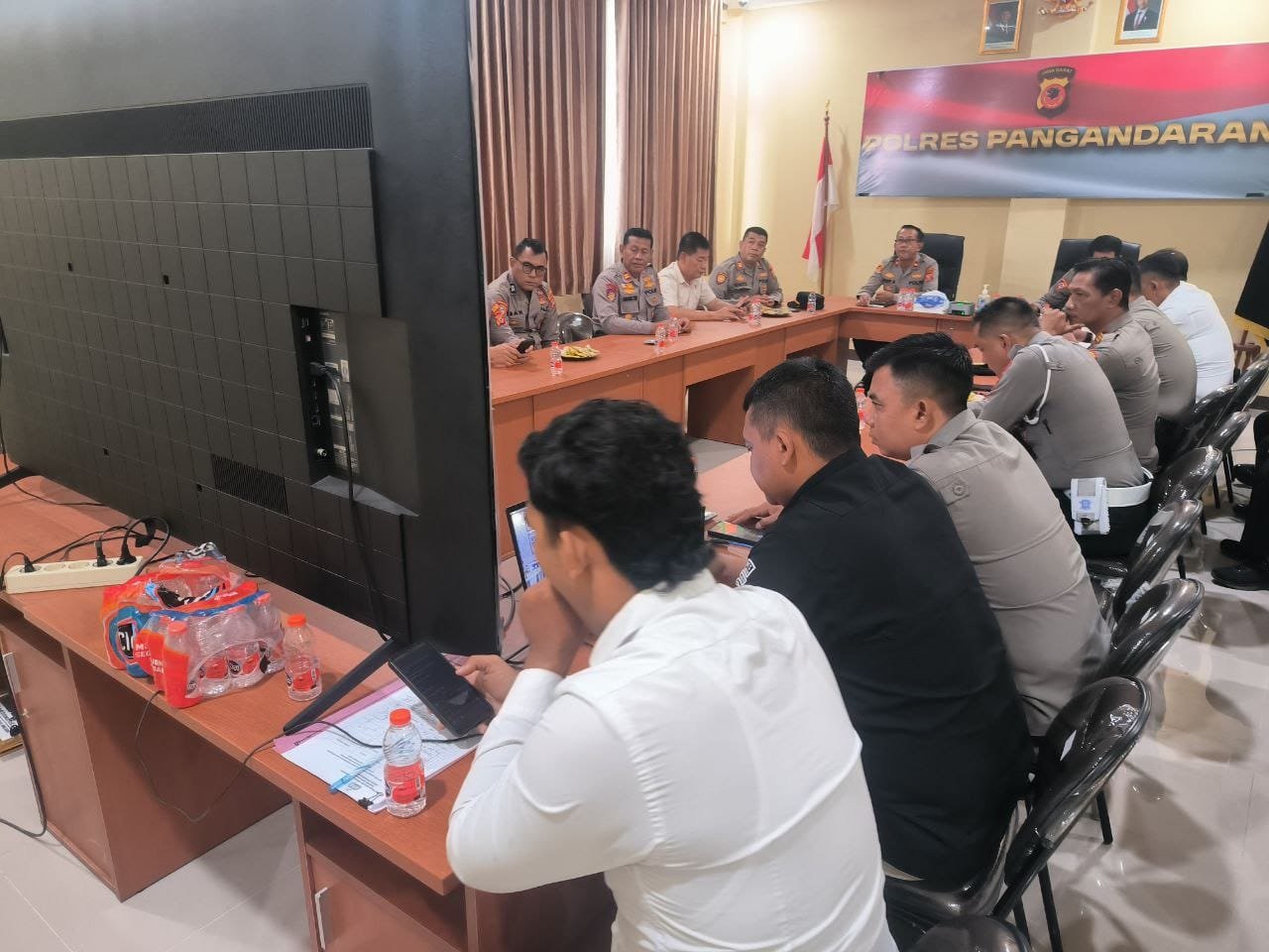 Kegiatan ini dilaksanakan di Aula Polres Pangandaran, dengan tujuan memastikan kelancaran komunikasi dan koordinasi antara Polres Pangandaran dengan jajaran Polda Jawa Barat secara daring.