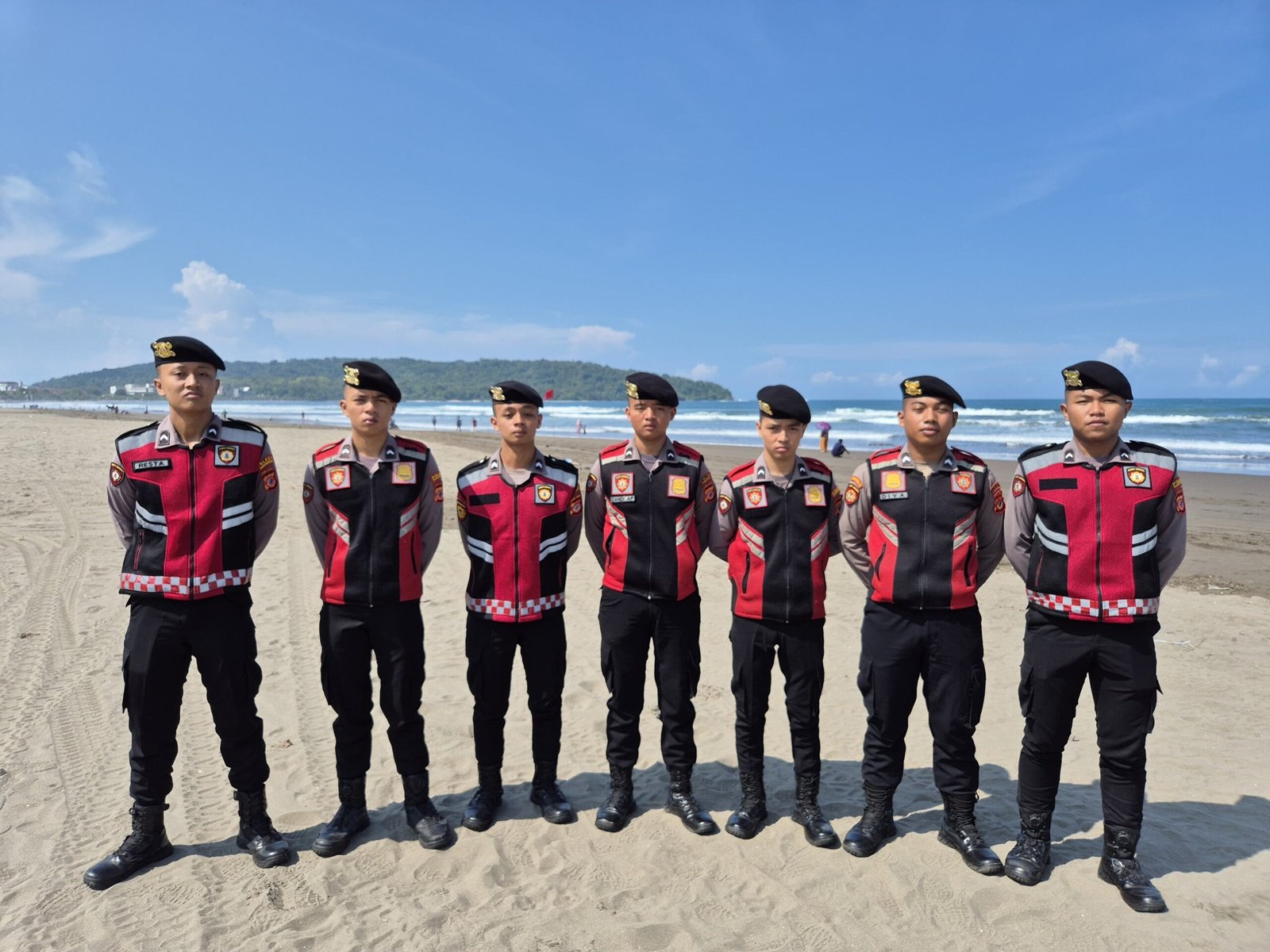 Pantai Pangandaran selalu menjadi tujuan favorit wisatawan, terutama saat akhir pekan. Dengan meningkatnya jumlah pengunjung, petugas kepolisian hadir untuk mengawasi dan mengatur agar suasana tetap aman dan tertib.