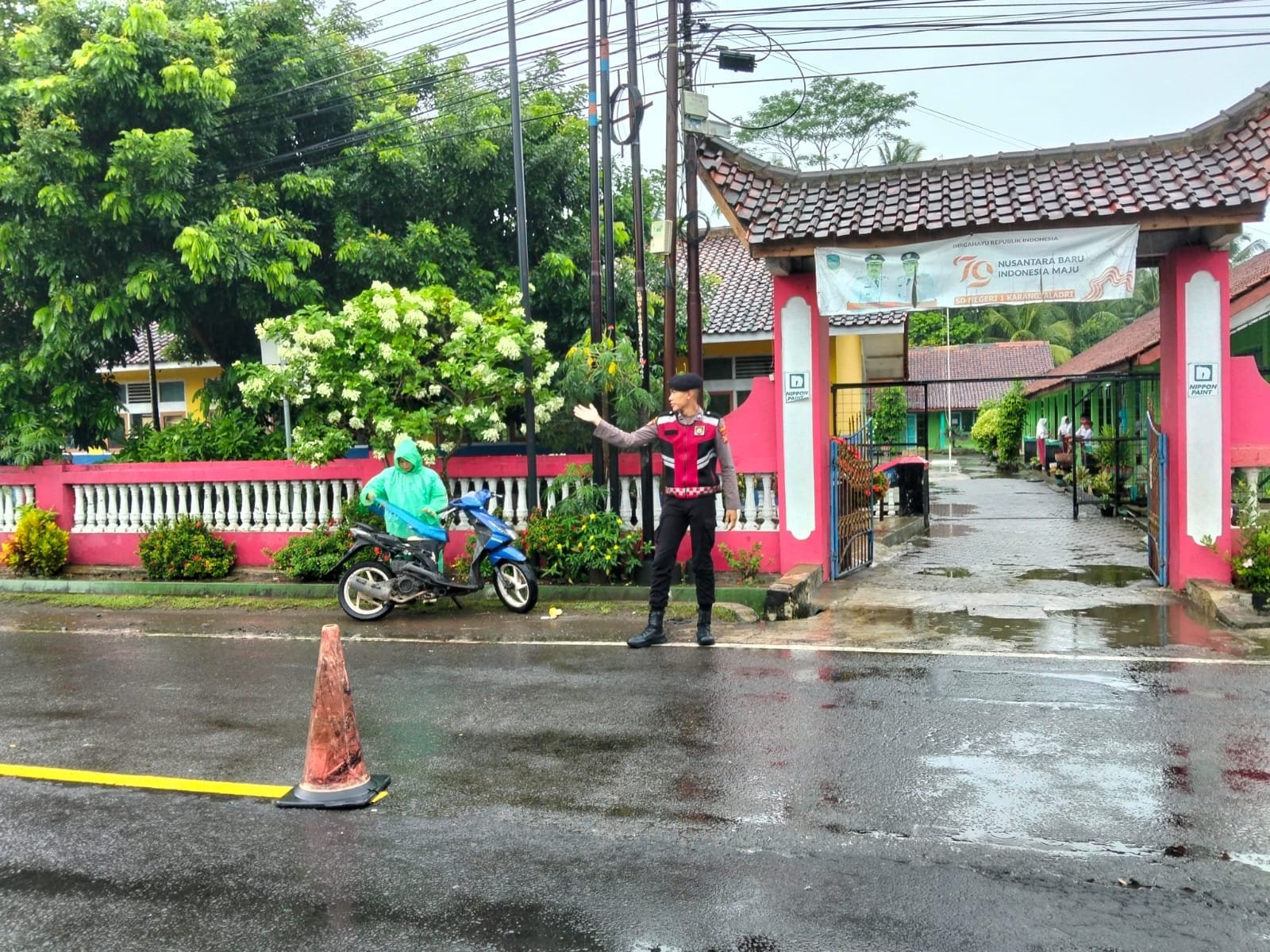 Kondisi cuaca yang tidak mendukung justru mempertegas pentingnya pengawasan lalu lintas secara langsung, terutama di area sekolah yang dipadati anak-anak dan orang tua yang mengantar mereka.