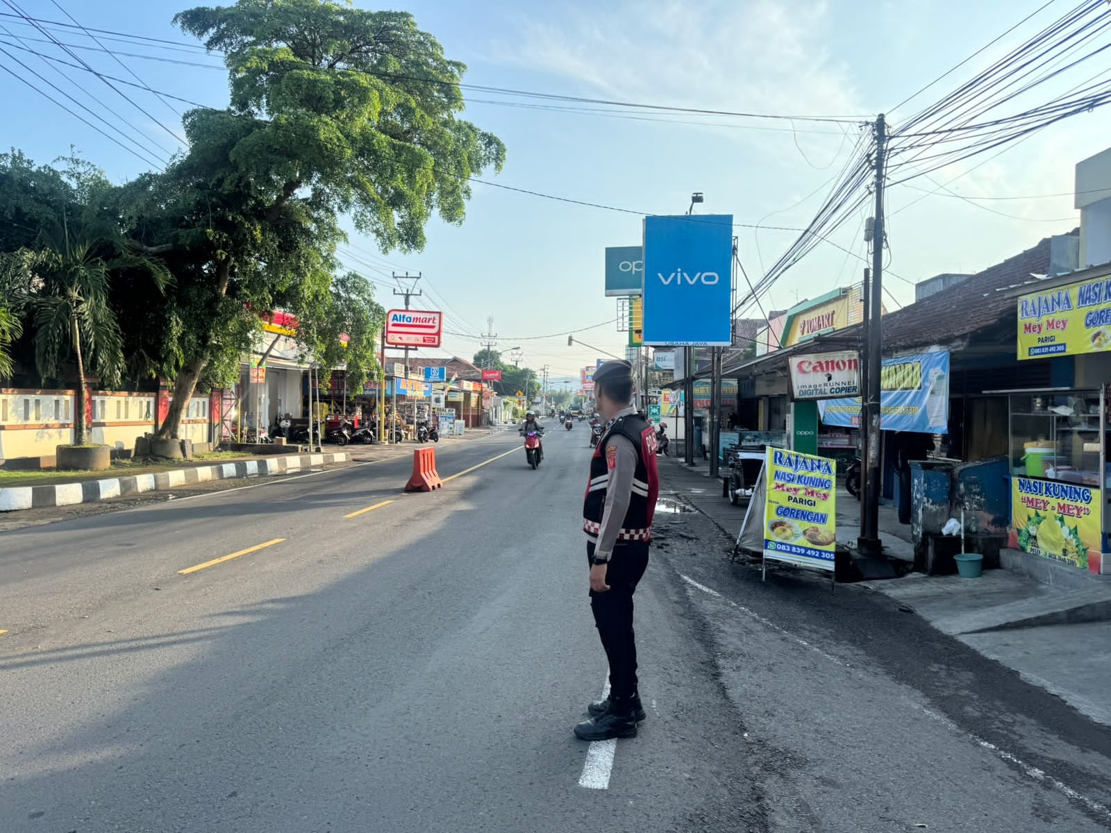 Sejak pukul 06.30 WIB, petugas Polres Pangandaran telah bersiaga di lokasi. Mereka melakukan pengaturan arus kendaraan dari dua arah dan membantu pejalan kaki menyeberang dengan aman, terutama pegawai dan masyarakat yang beraktivitas di area perkantoran.