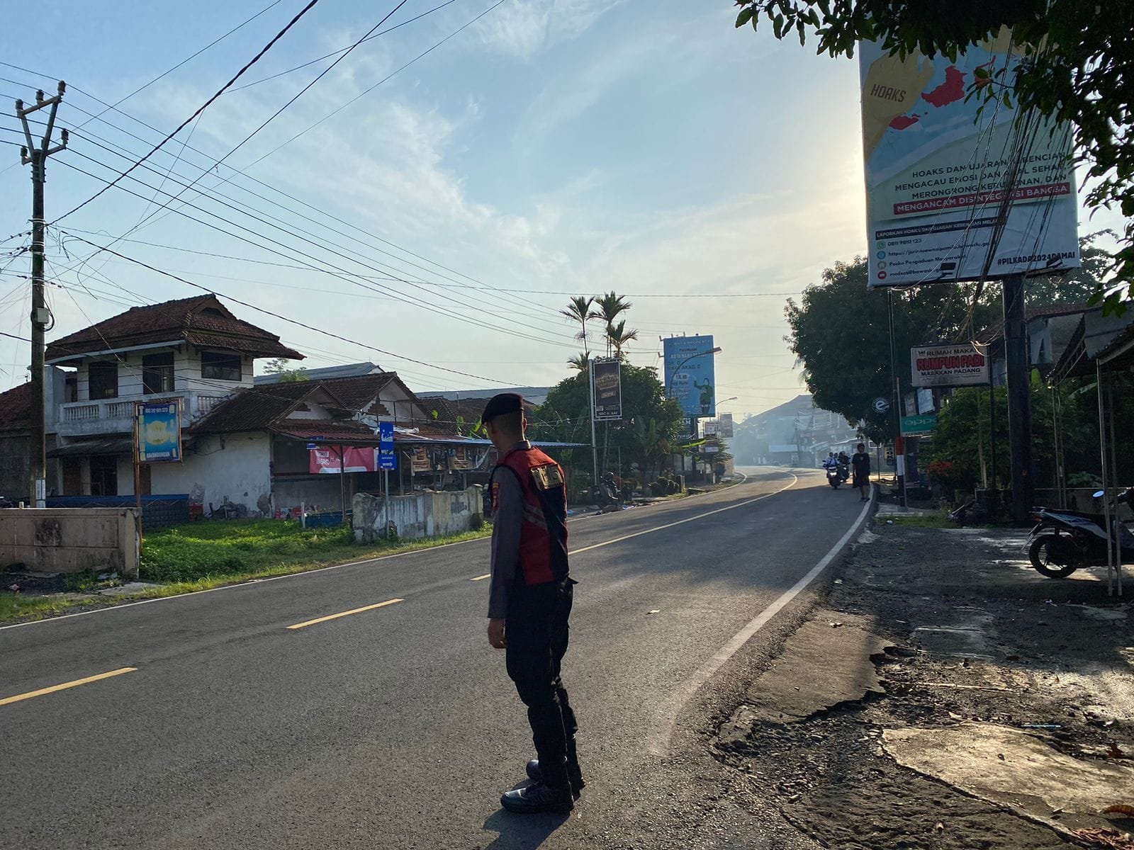 Sejak pukul 06.30 WIB, anggota Polres Pangandaran tampak sigap mengatur arus kendaraan, mengarahkan pengendara yang melintas, dan membantu para pejalan kaki menyeberang jalan dengan aman.
